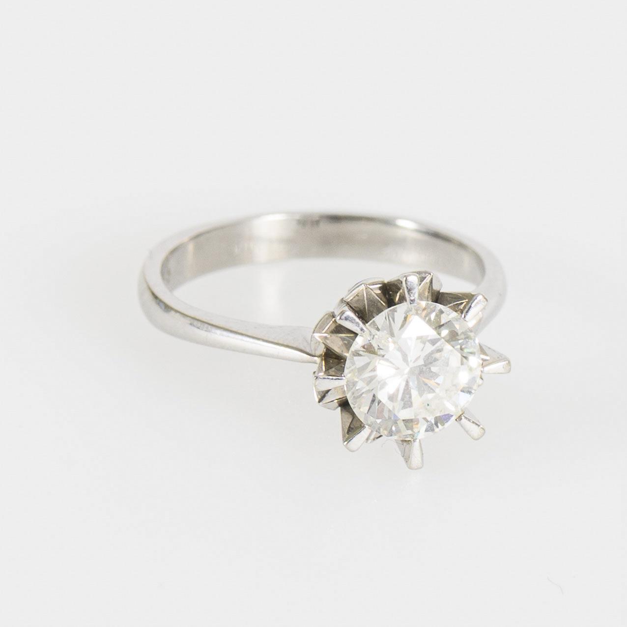 Hallmarked 750 white gold. Ring size 52, diameter of the brilliant-cut diamond (measured in the setting) 7.34 mm. 4,0 g.