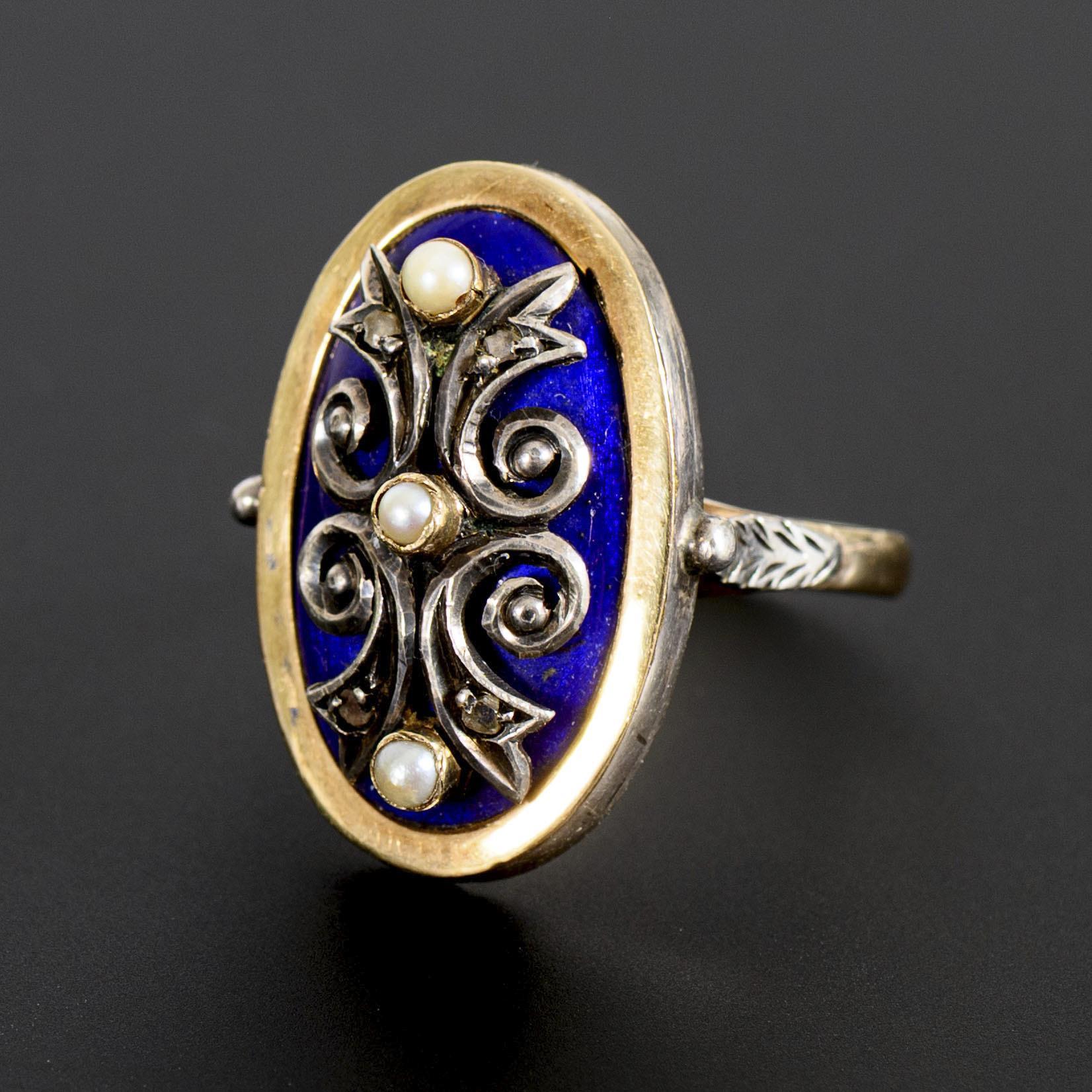 Historical ring with enamel, pearls and diamond chips.