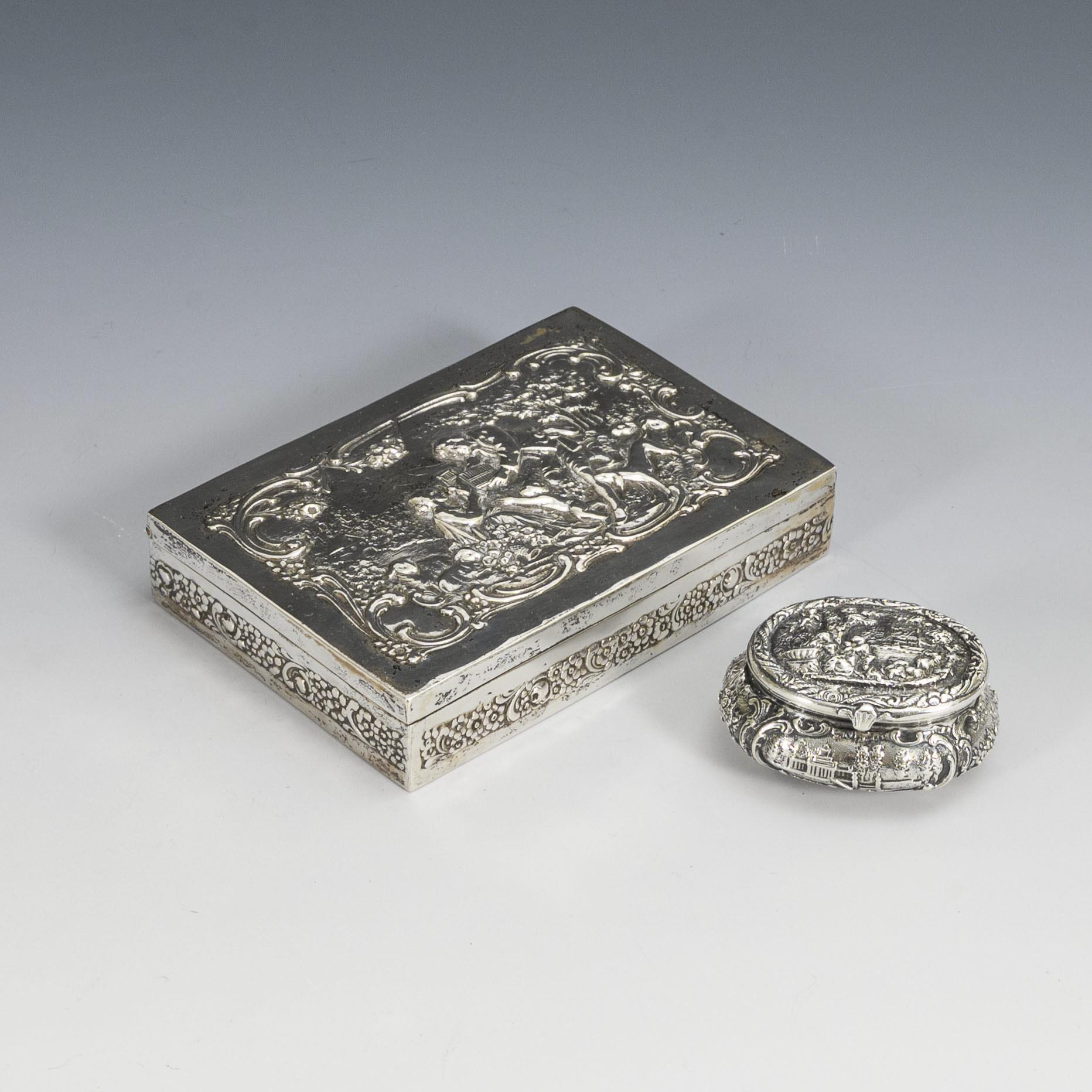 Relief silver box and pillbox.