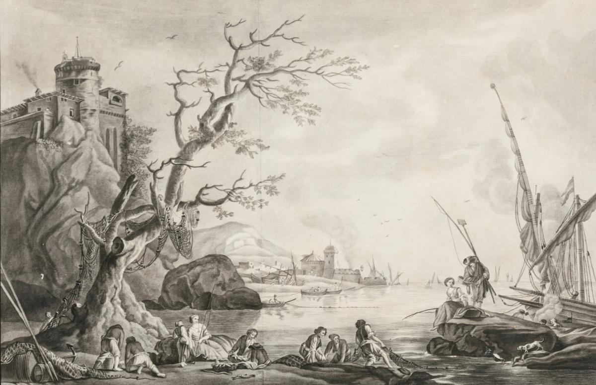 2 Ansichten nach Kupferstichen von Morelli F. Vue: "Vue pres pouzol au Golfe de Naples" und "La cascade de Tivoli"..