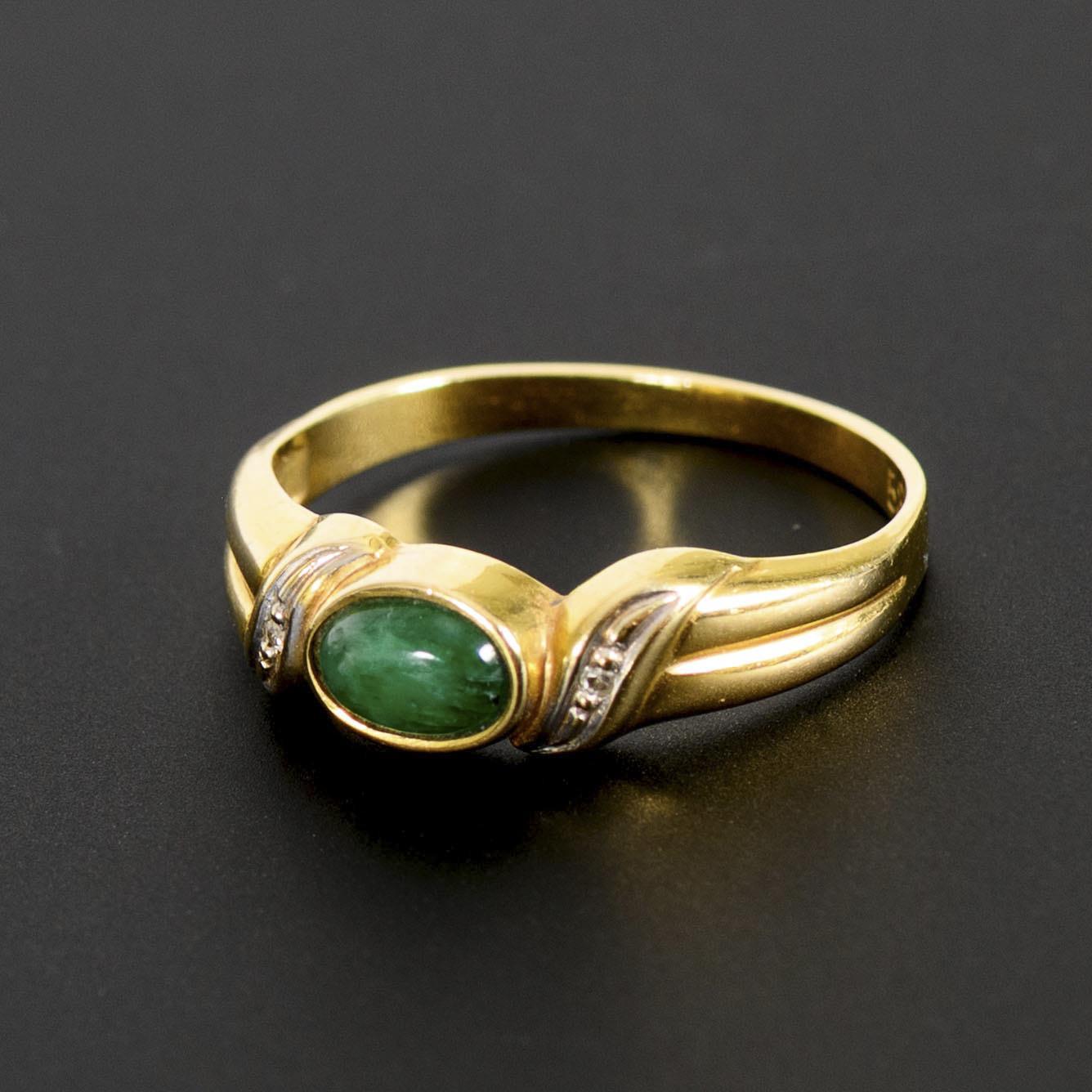 Ring with green cabochon, probably jadeite, and diamond chips.