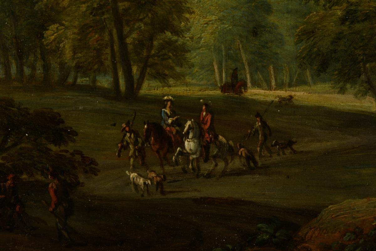 Landschaft mit höfischer Jagdgruppe