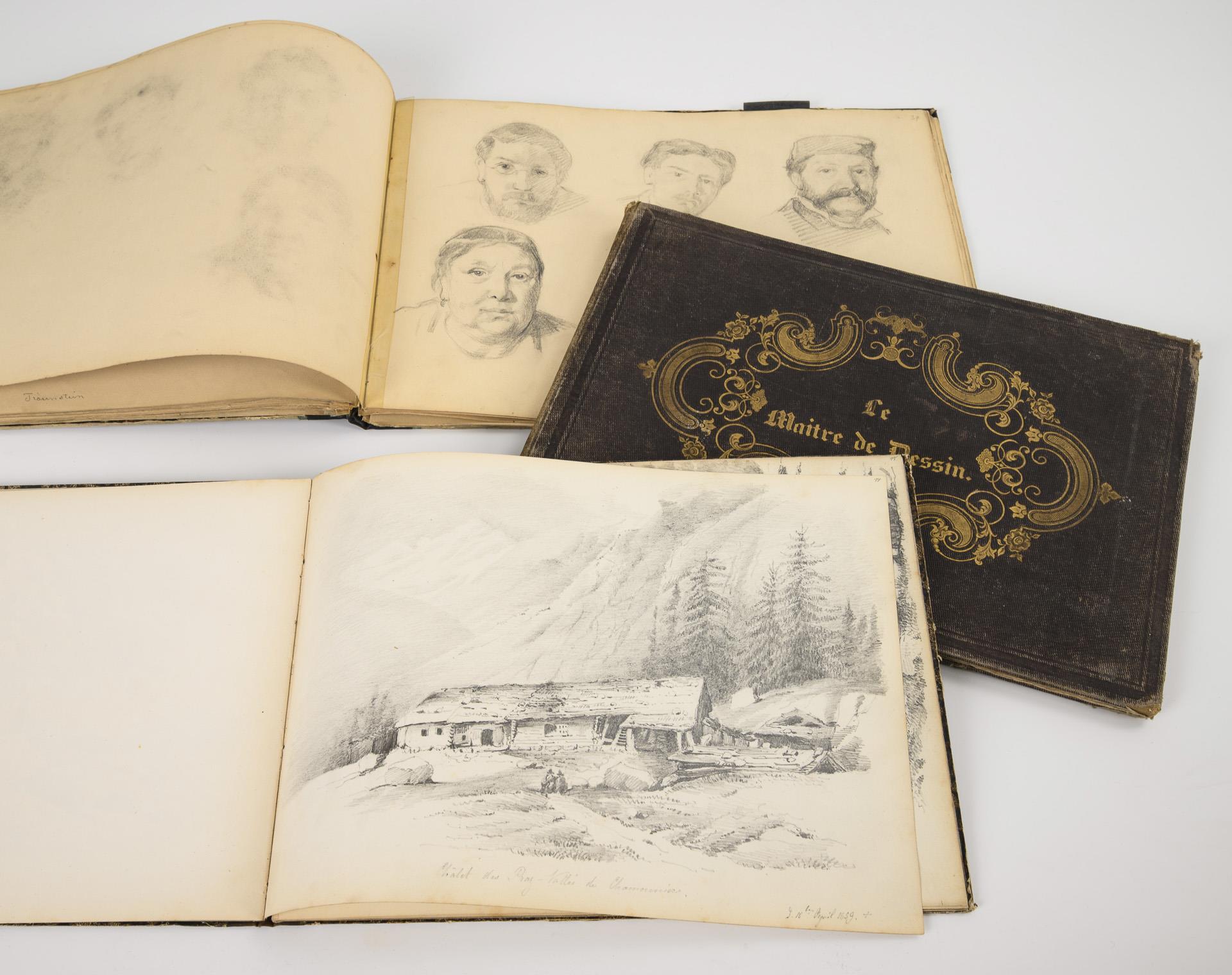 Predominantly pencil and charcoal sketches. 2 possibly by the same artist, dated between 1856 and 1873. One sketchbook with multiple signatures "Antoinette Ch.", as well as notes indicating which sketches were copied from models; many Swiss landscapes, isolated architectural depictions.