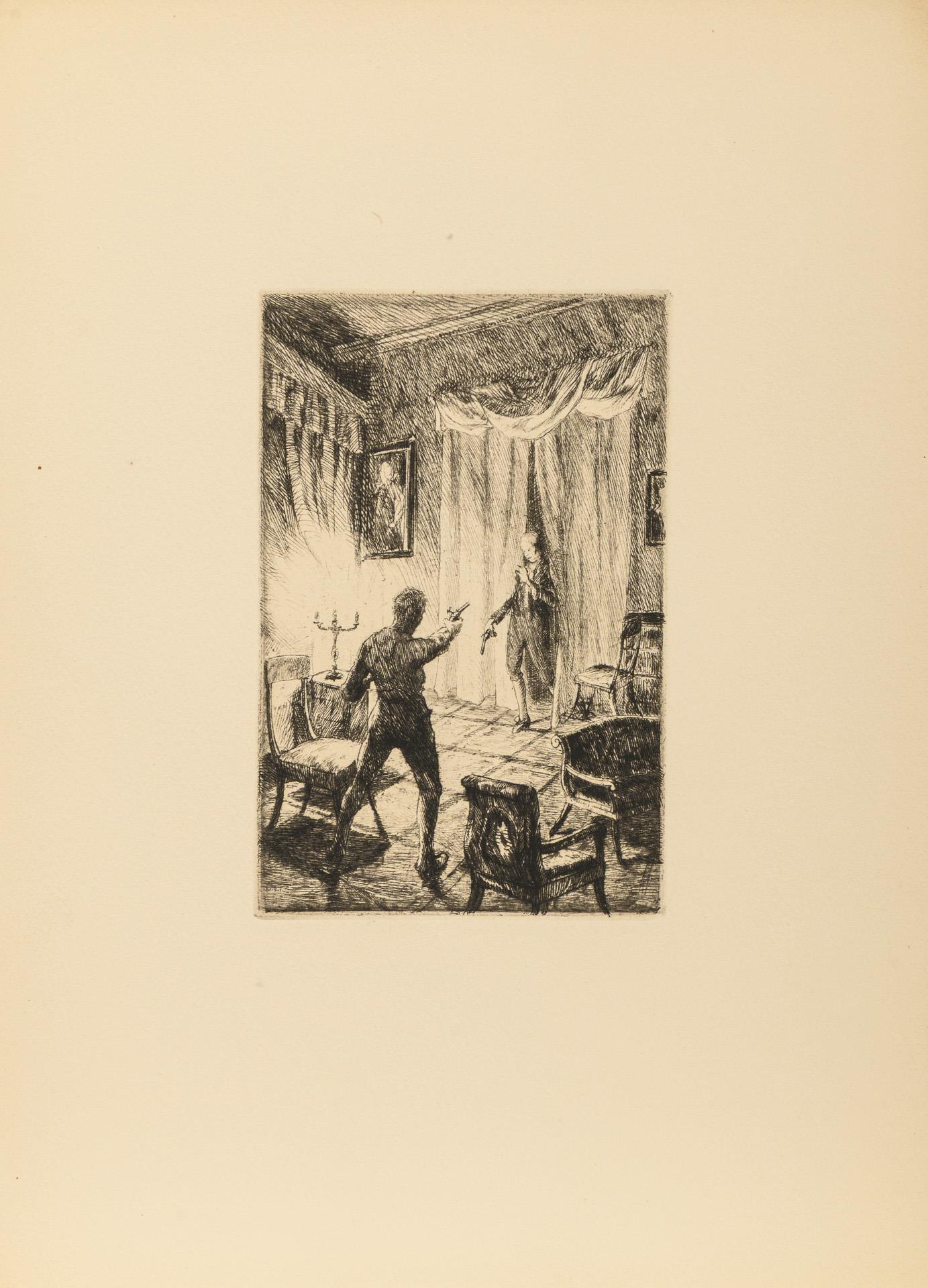 8 sheets from an illustrative portfolio (12 sheets) for the novella "Vanina Vanini" (1829) by the French writer Marie-Henri Beyle, known as "Stendhal". Partly signed in print.