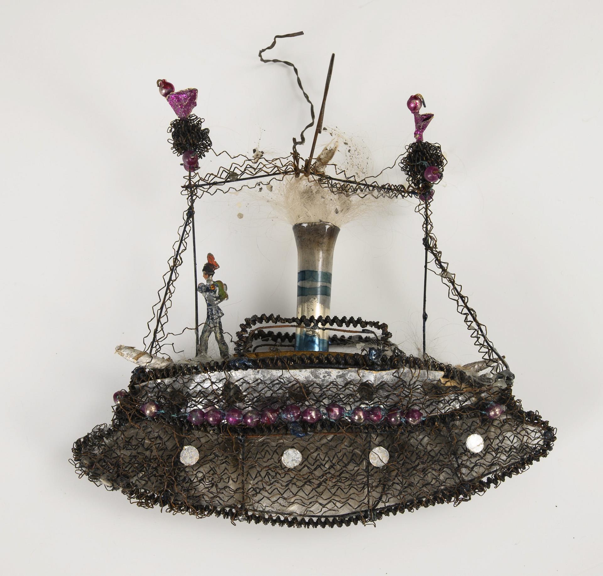 For the Christmas tree. Steamboat with small tin figure. Slight signs of age.