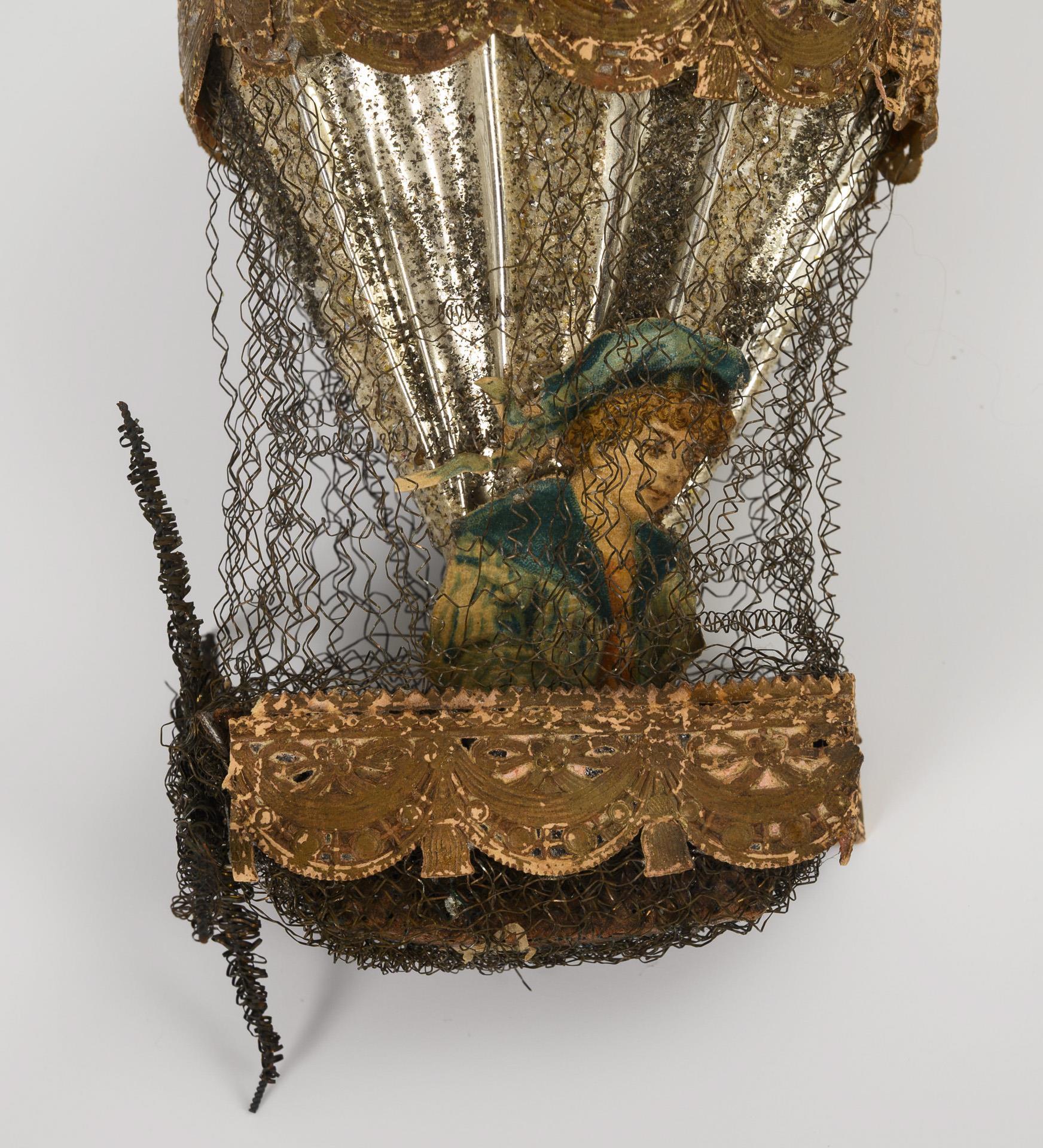 For the Christmas tree: balloon with paper trimmings, wires and small sailor. Slight signs of age.