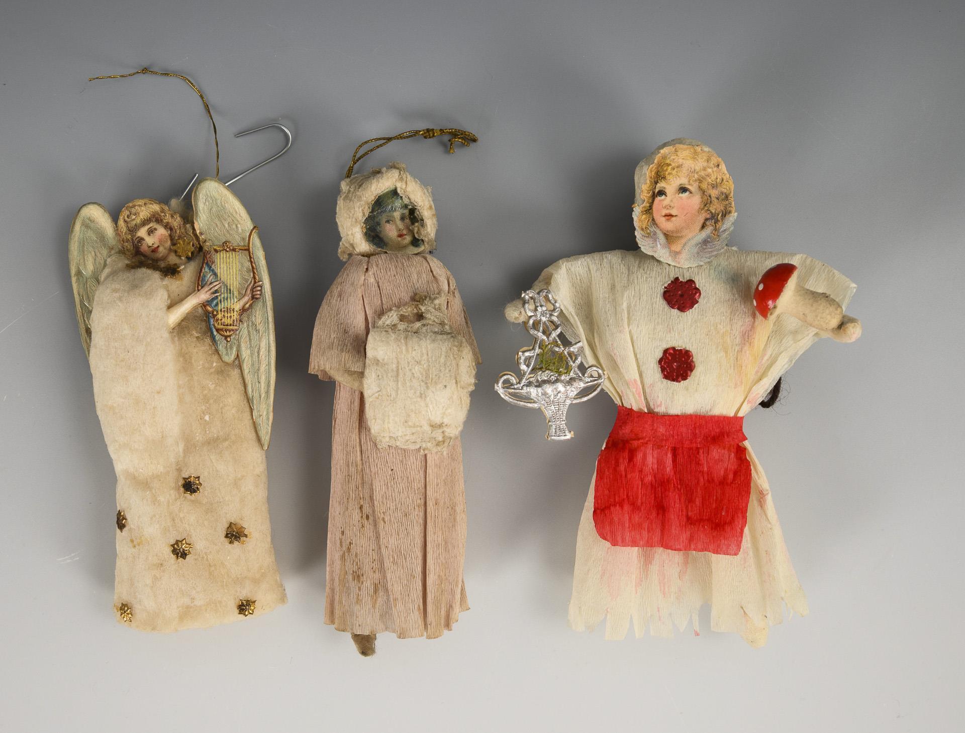 For the Christmas tree: swing with Santa Claus and Christmas tree, 2 angels and 1 girl with muff. Signs of age, small defects.