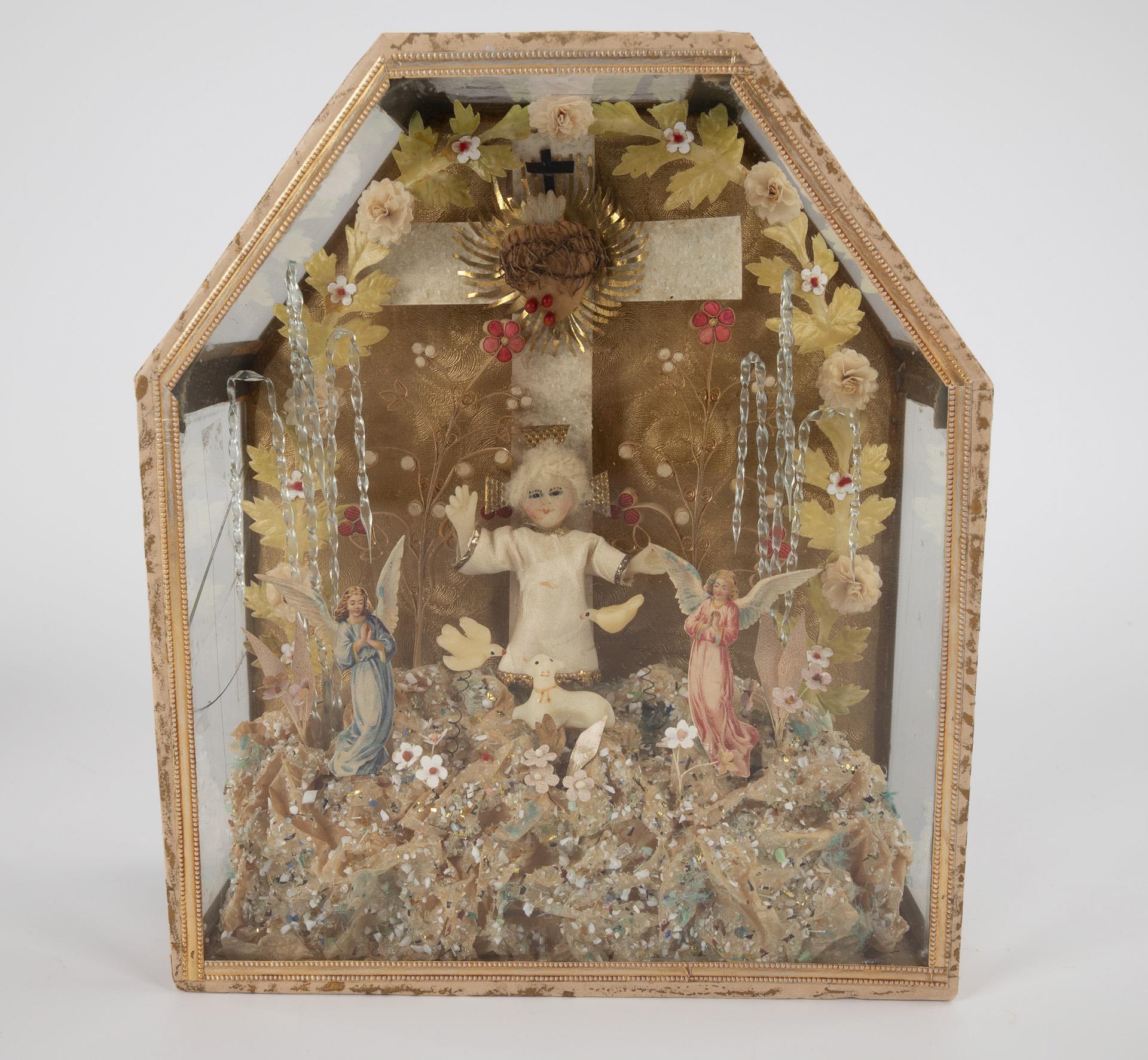 3 wax Jesus children in display cases.
