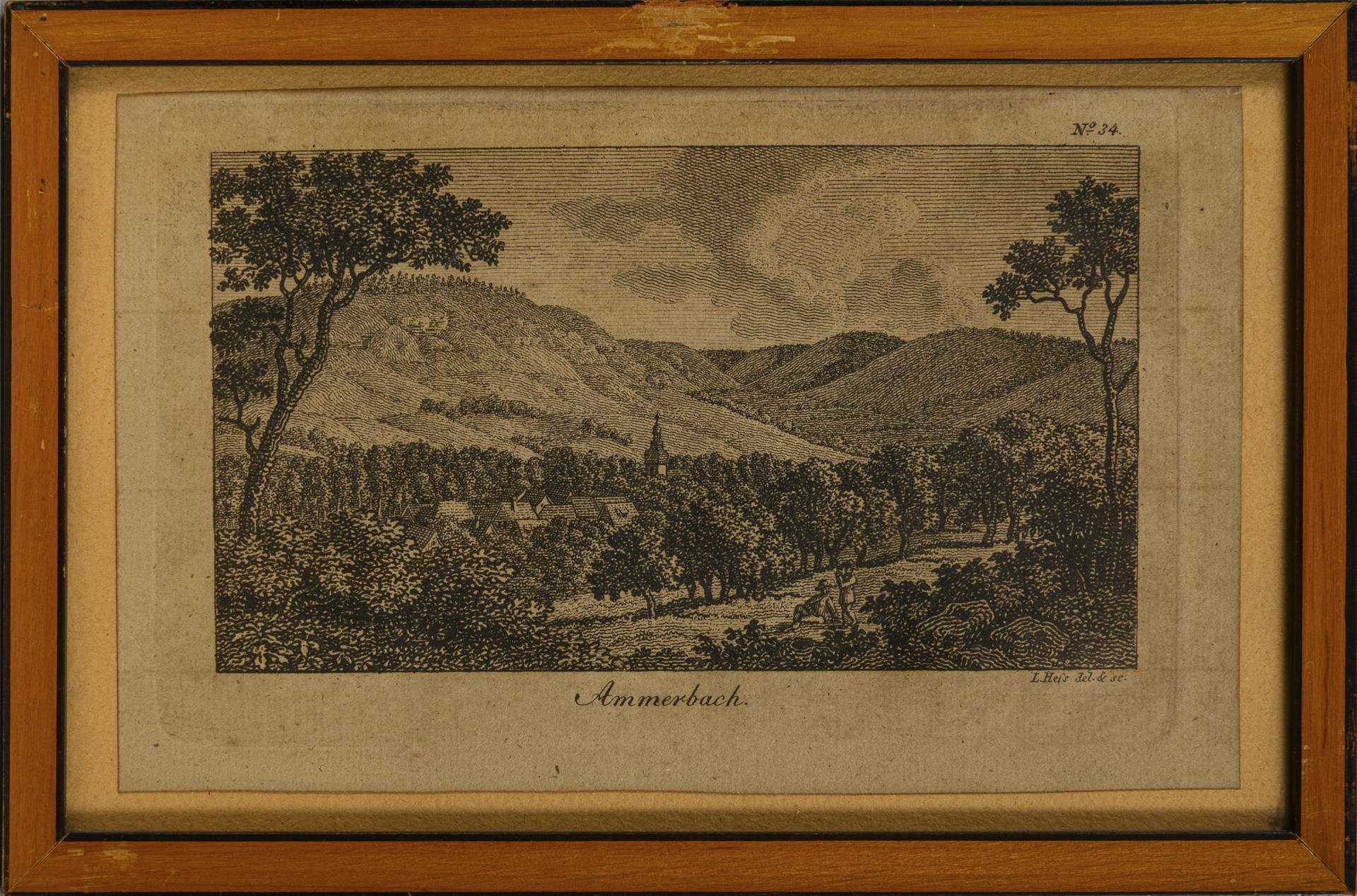 Designated engravings in uniform framing. Fürstengraben, Ammerbach, Fürstenbrunnen, Kunitzburg, Rasenmühle, Im Paradies, Burg Saaleck and Rudelsburg, Garten an der Sternwarte, In der Friesnitz, bei Zwätzen, Ruinen der Kunitzburg. Each slightly browned paper.