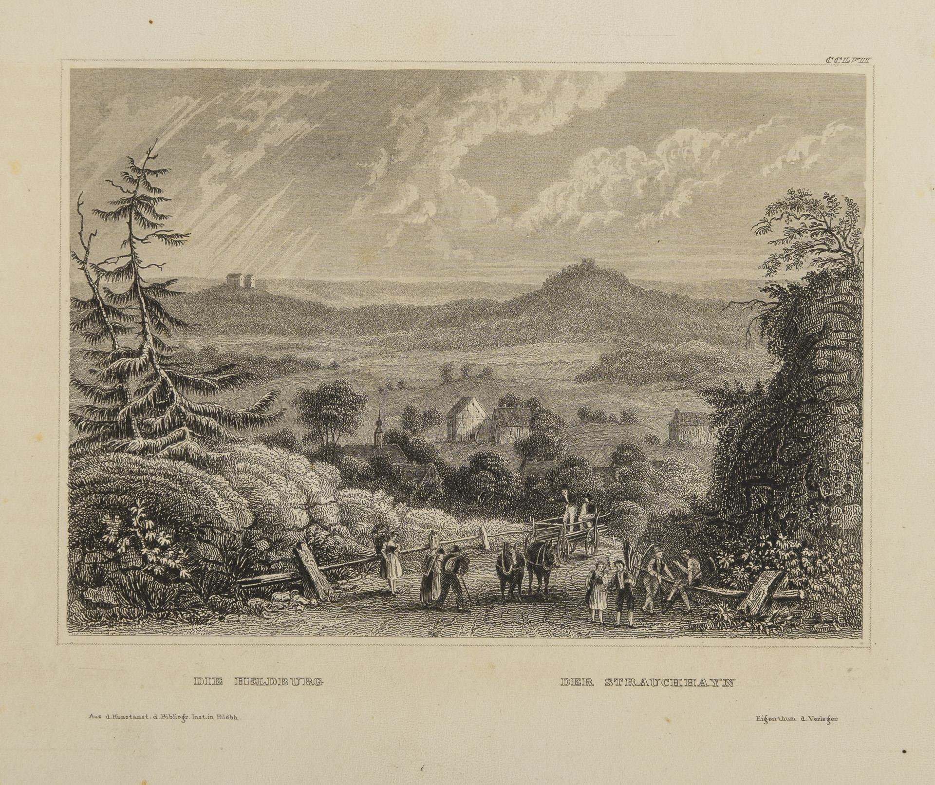 Mainly steel engravings, copper engravings, 1x colored, 1 watercolour. 1x with historical pen inscriptions.