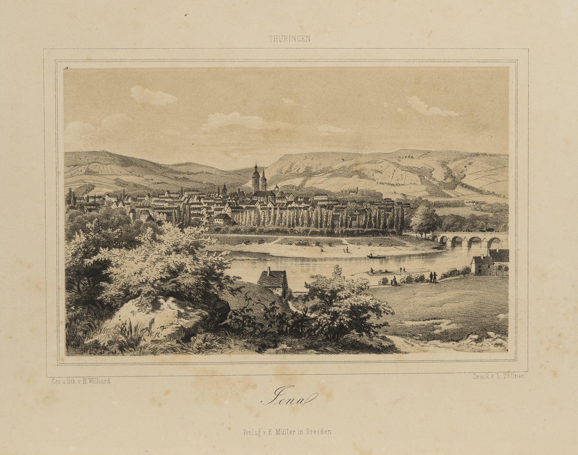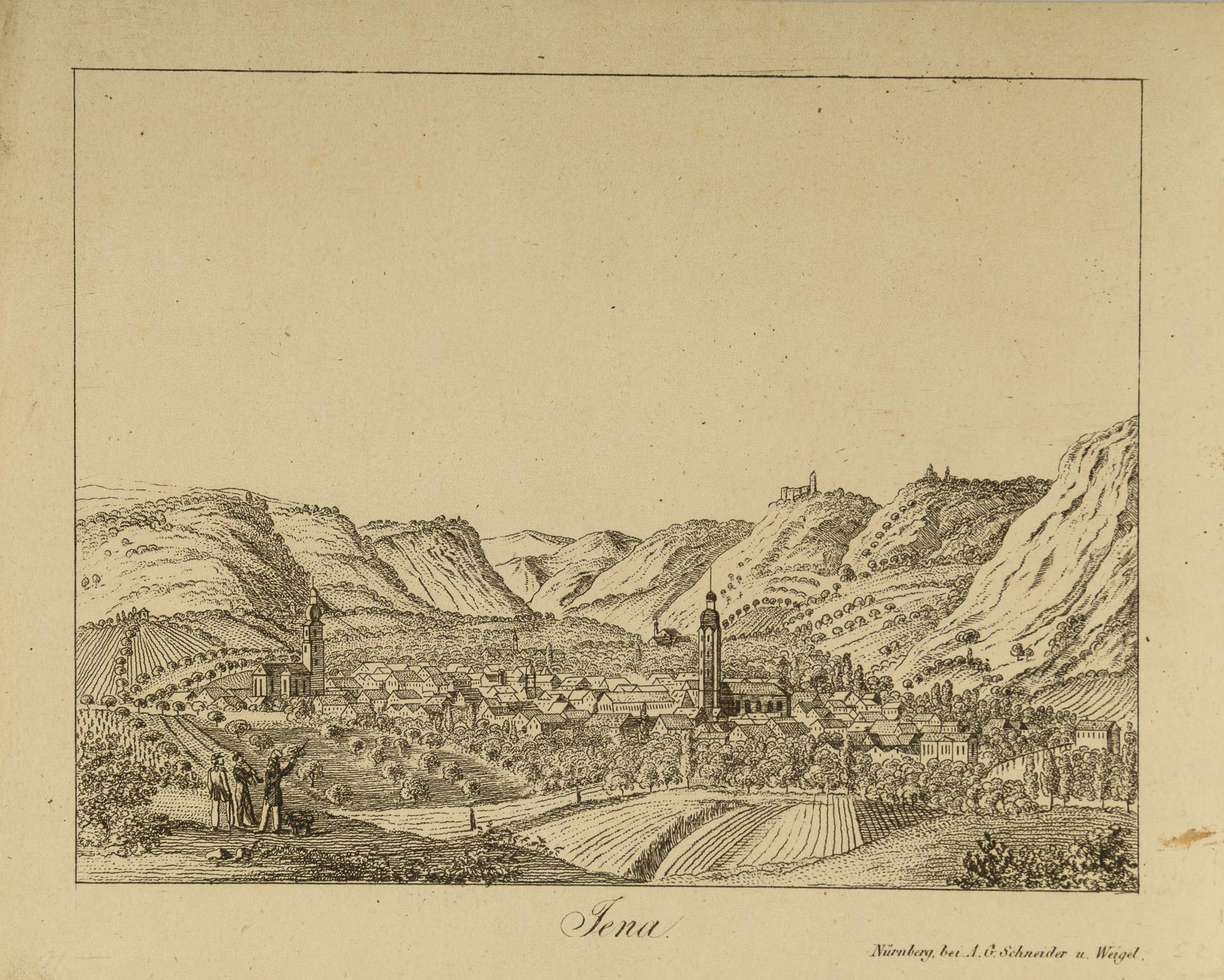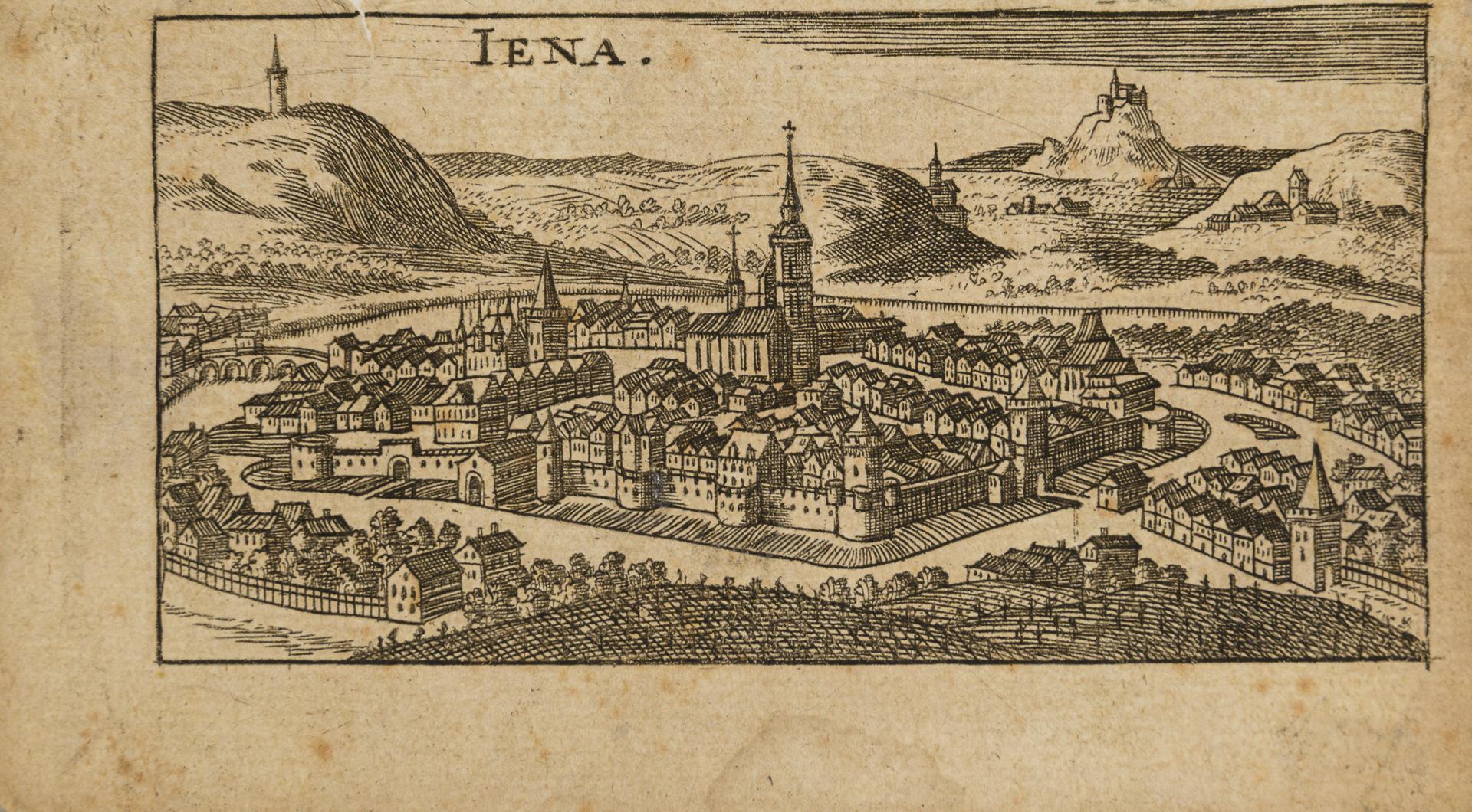 Small collection of various views from Thuringia, 22 unframed, one framed. 9 of the views related to the city of Jena, furthermore mainly castles. The majority from the 19th century, 3x 18th, 1x probably 2nd half of the 17th century. 3 sheets with water damage, partly foxing.
