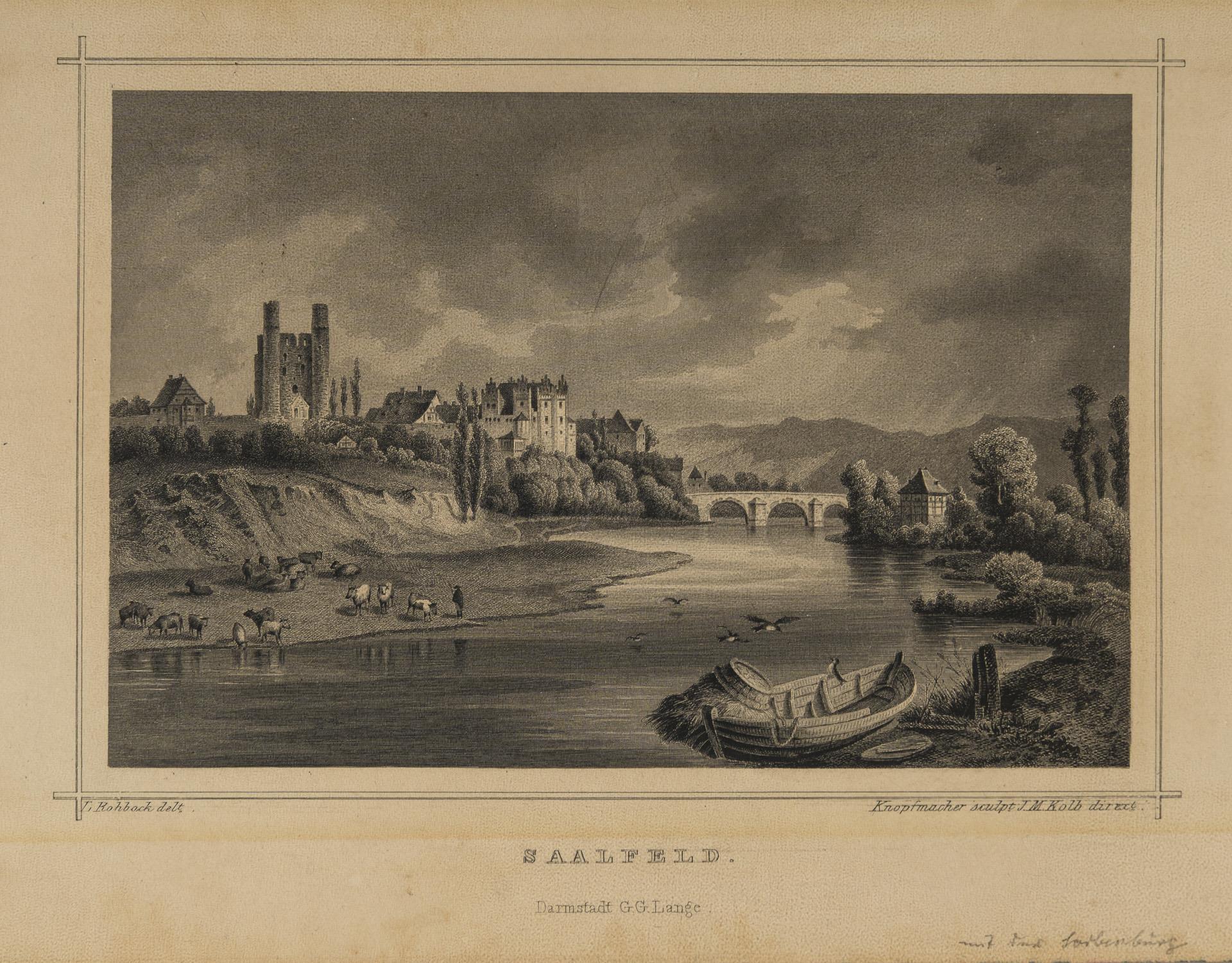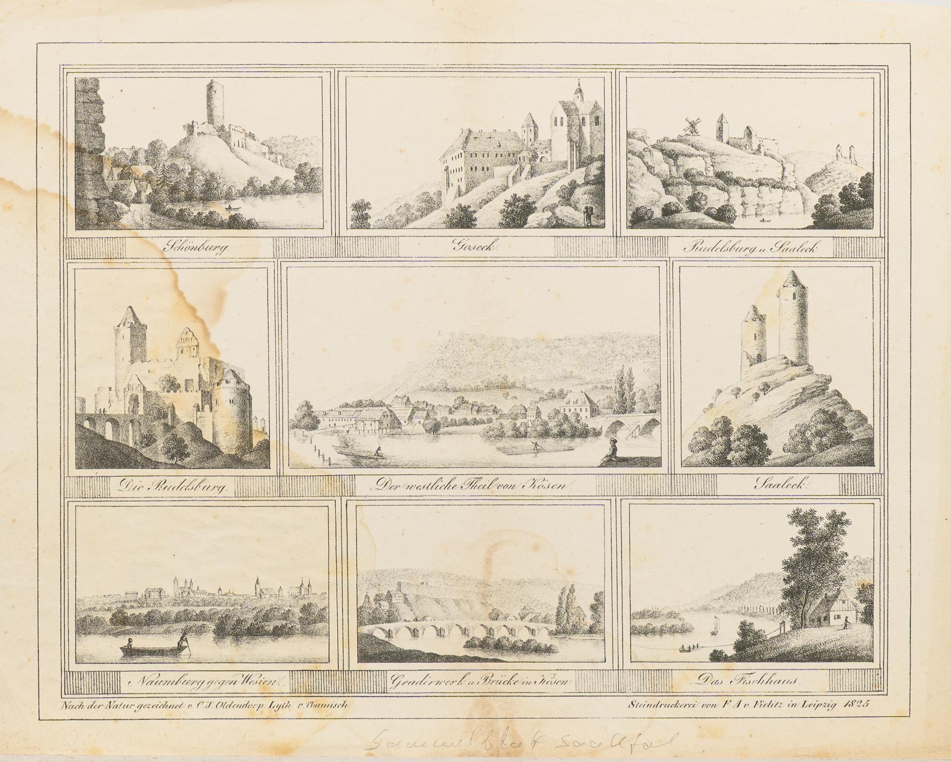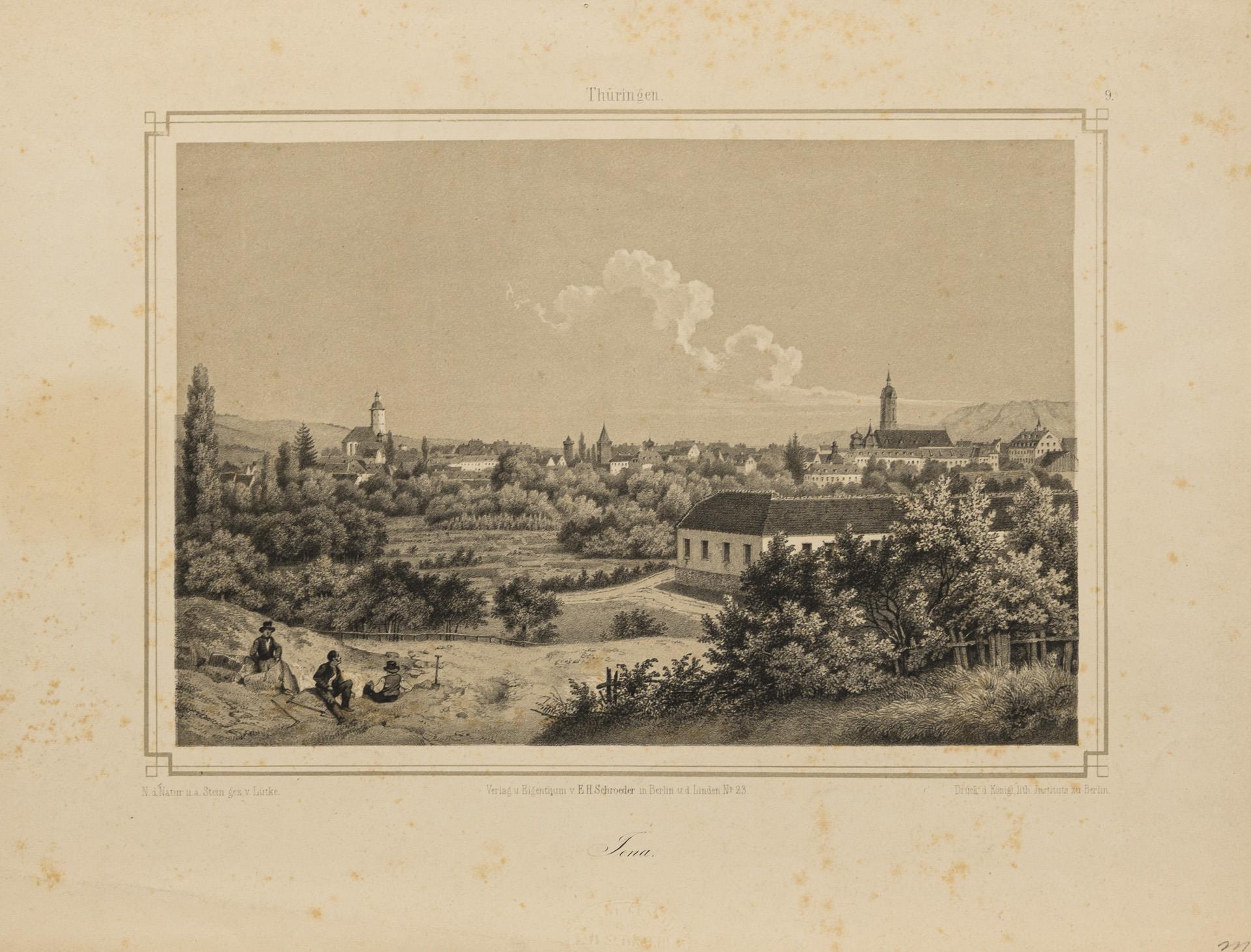 Small collection of various views from Thuringia, 22 unframed, one framed. 9 of the views related to the city of Jena, furthermore mainly castles. The majority from the 19th century, 3x 18th, 1x probably 2nd half of the 17th century. 3 sheets with water damage, partly foxing.