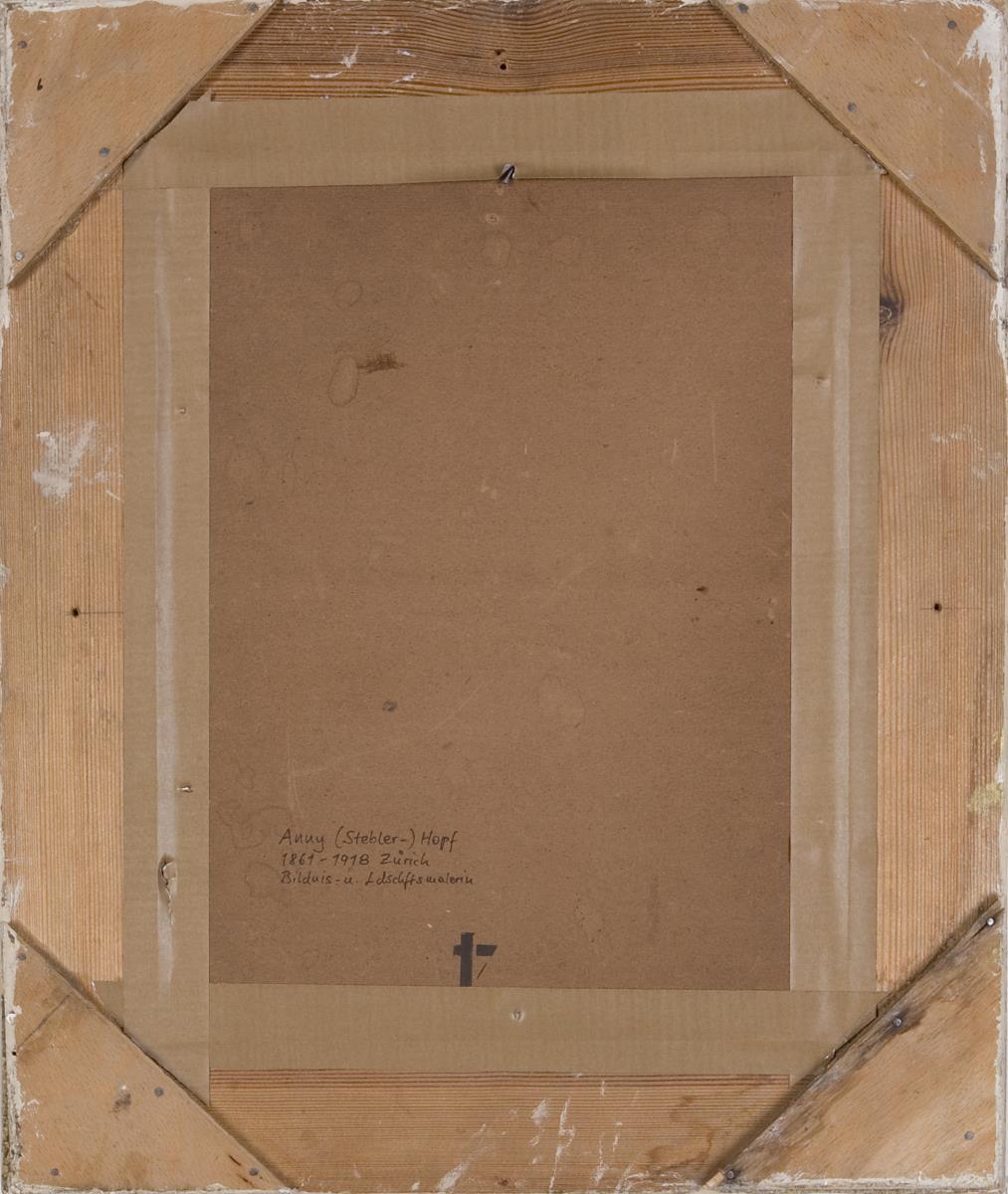Stebler-Hopf (Anna Hopf), Malerin. Studierte an der Kunstschule in Basel. Schülerin von Karl Gussow in Berlin. 1876-1881 Professorin an der Berliner Akademie. 1882 an der Académie Julian in Paris. Mehrfach in den Pariser Salons vertreten. Ab etwa 1890 in Zürich tätig * Partnerauktion Bergmann.