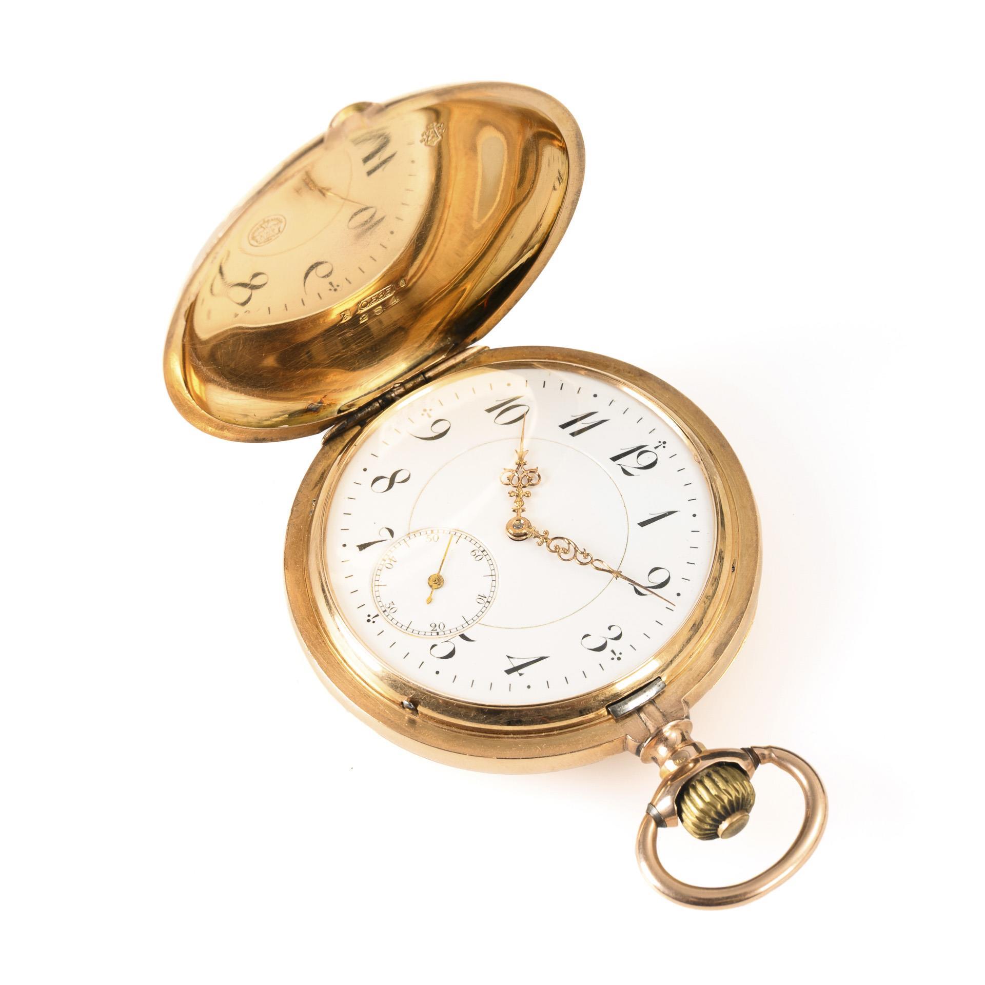 Hallmarked 585, Swiss hallmark, hallmark of fineness, company mark, gold dust cover. Ø 5.4 cm. 120 g.