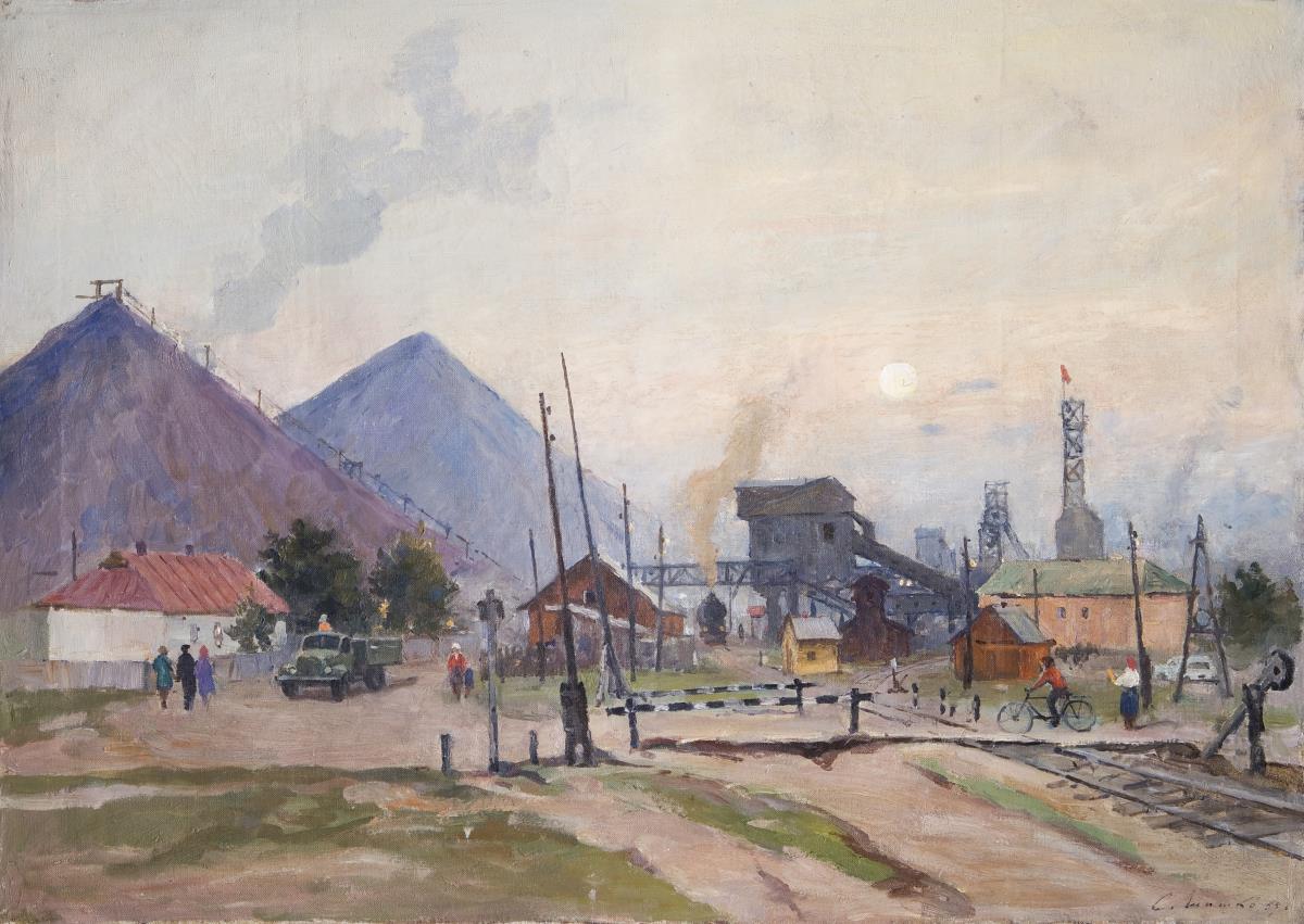 Sozialistischer Realismus mit starker Wirklichkeitsnähe. Szene aus dem Arbeitsleben und der Technik des Alltages. Rückseitig kyrillischer Stempel. Ohne Keilrahmen, ohne Rahmen.