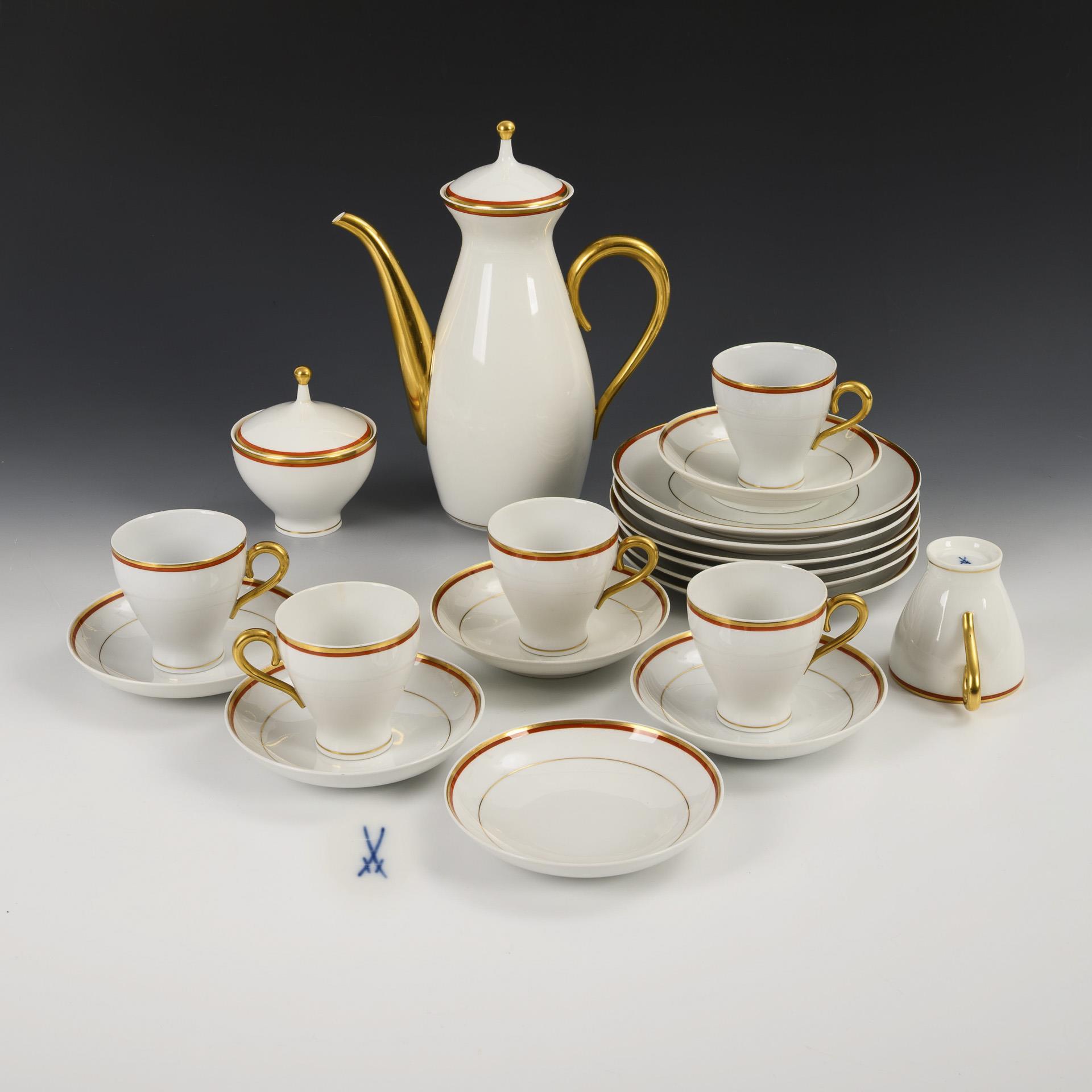 Coffee service with coral rim. Meissen.