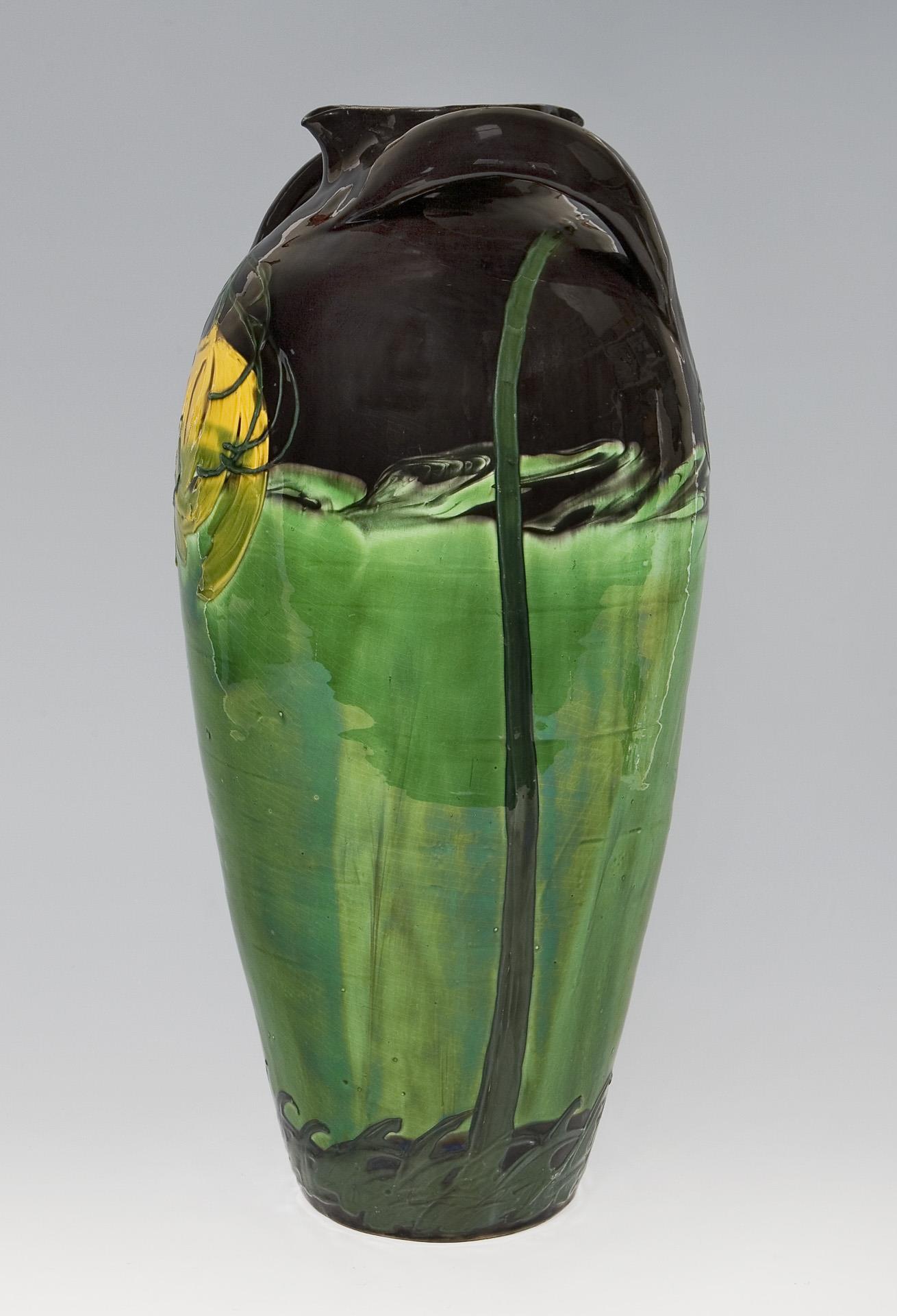Large Laeuger vase with handle "Chrysanthemums". Kandern clay works.