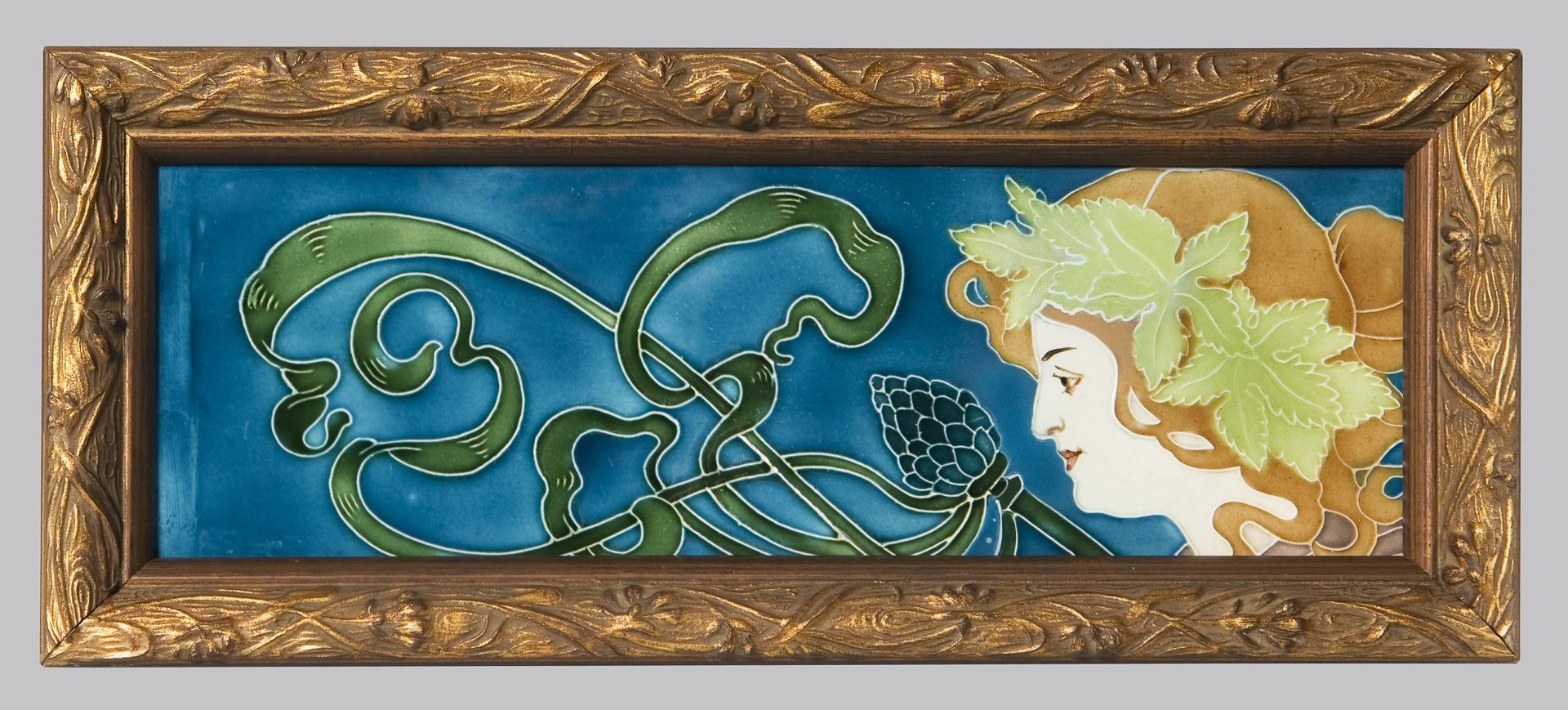 3 Art Nouveau tiles in a stucco frame. Johann von Schwarz, Nuremberg.
