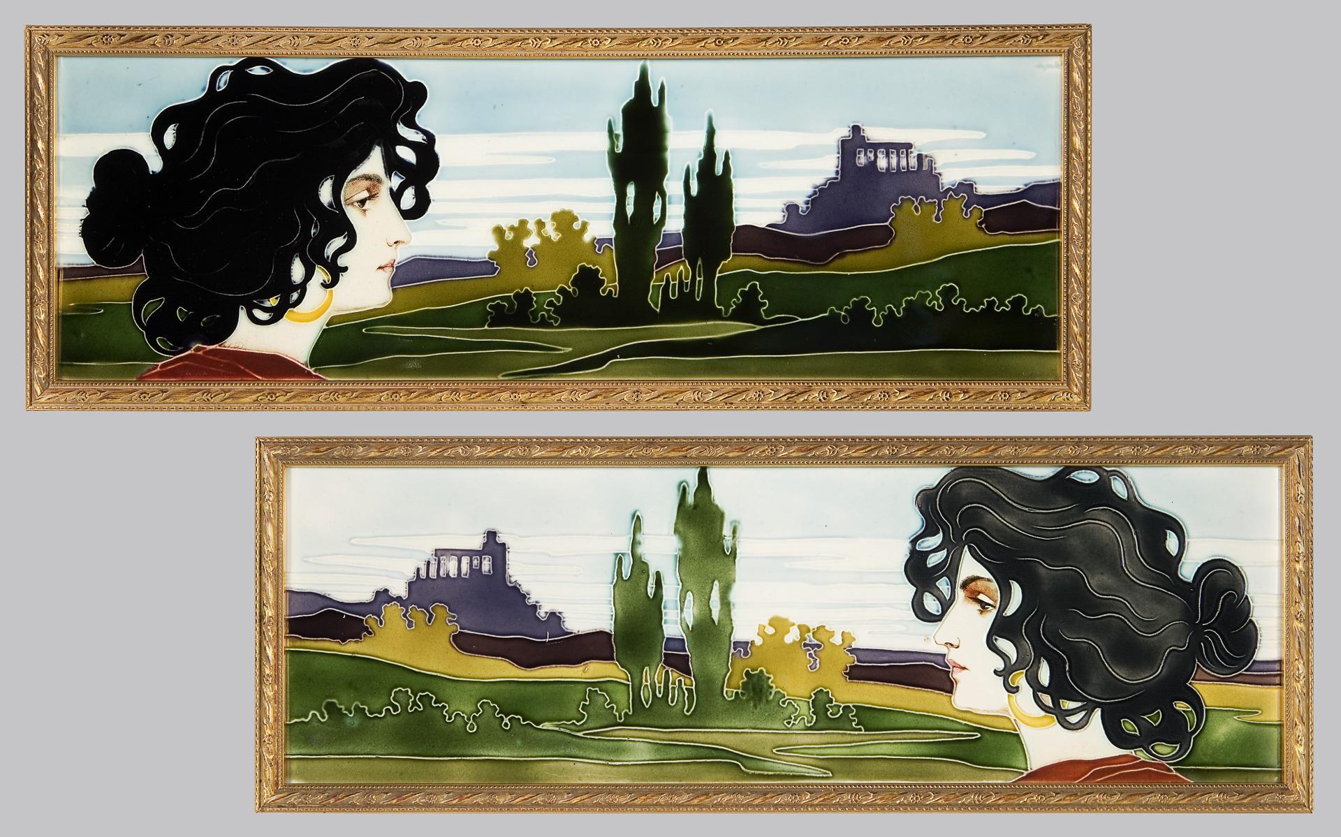 Pendant Art Nouveau tiles in a stucco frame. Johann von Schwarz, Nuremberg.