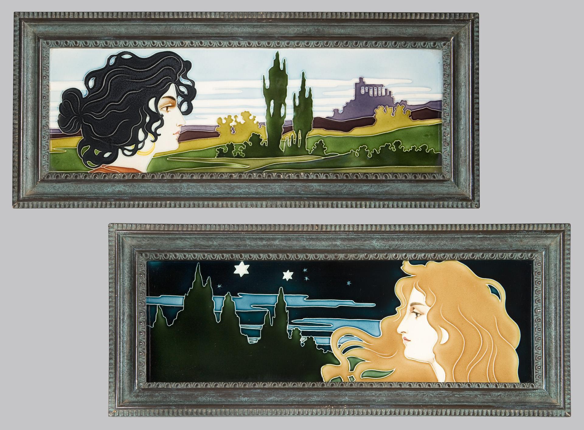 2 Art Nouveau tiles in profile frame. Johann von Schwarz, Nuremberg.
