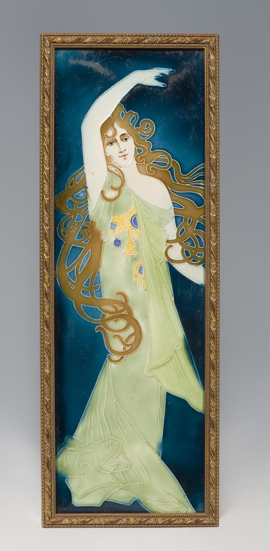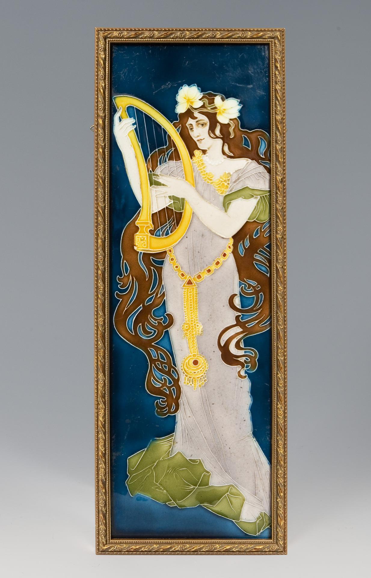 Pendant Art Nouveau tiles in a stucco frame. Johann von Schwarz, Nuremberg.