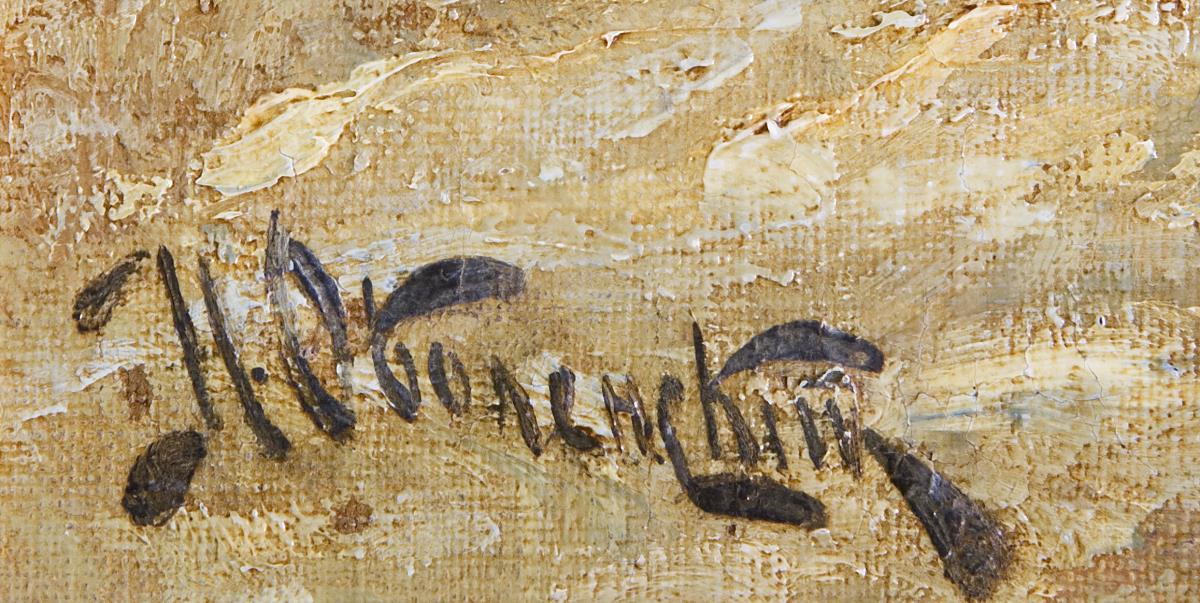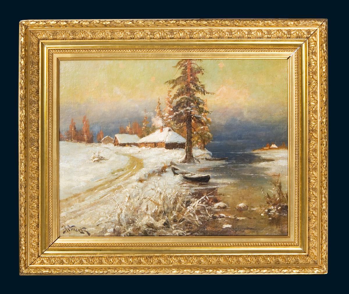 Ein romantisches Motiv von herber und melancholischer Schönheit, fein interpretiert. Originaler Spannrahmen, originaler vergoldeter Stuckrahmen.