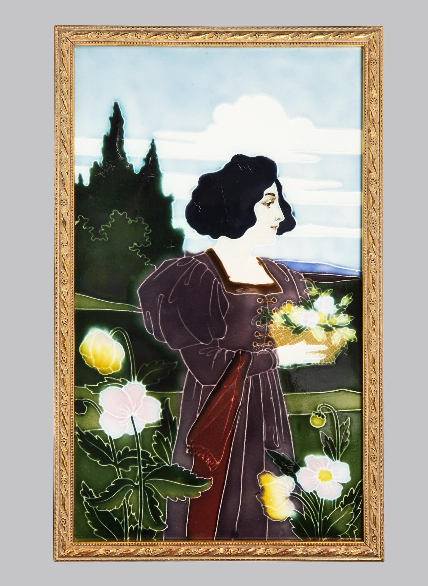 Art Nouveau tile in stucco frame. Johann von Schwarz, Nuremberg.
