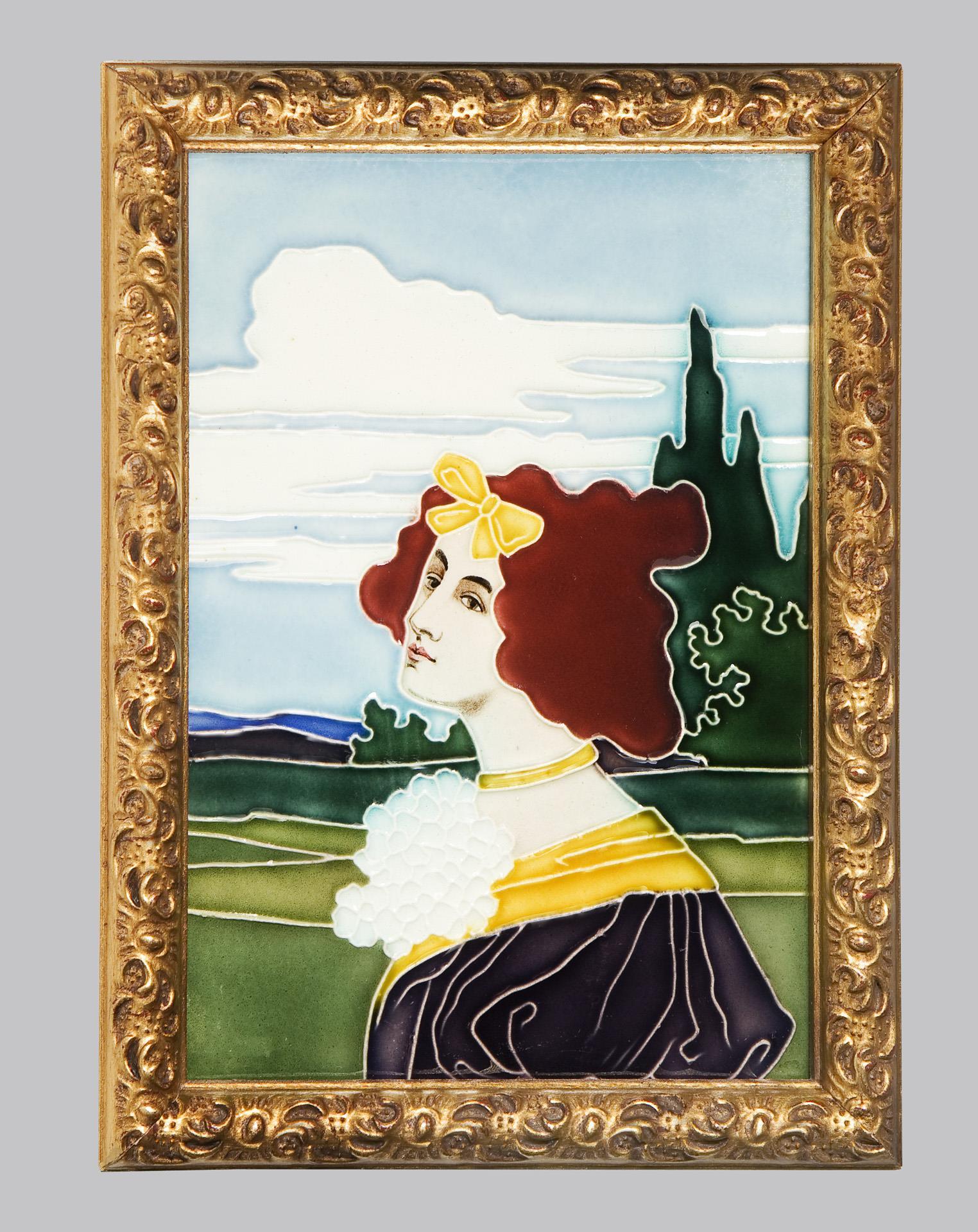 Small Art Nouveau tile in stucco frame. Johann von Schwarz, Nuremberg.