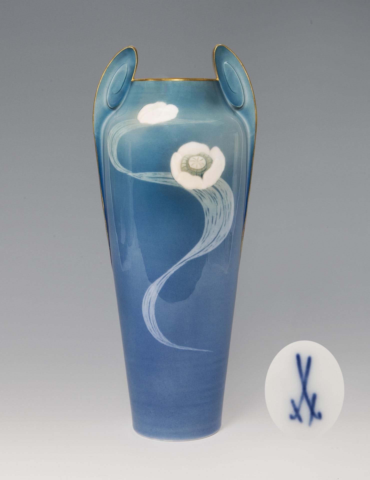 Rare large Art Nouveau vase with pâte-sur-pâte decoration. Meissen.