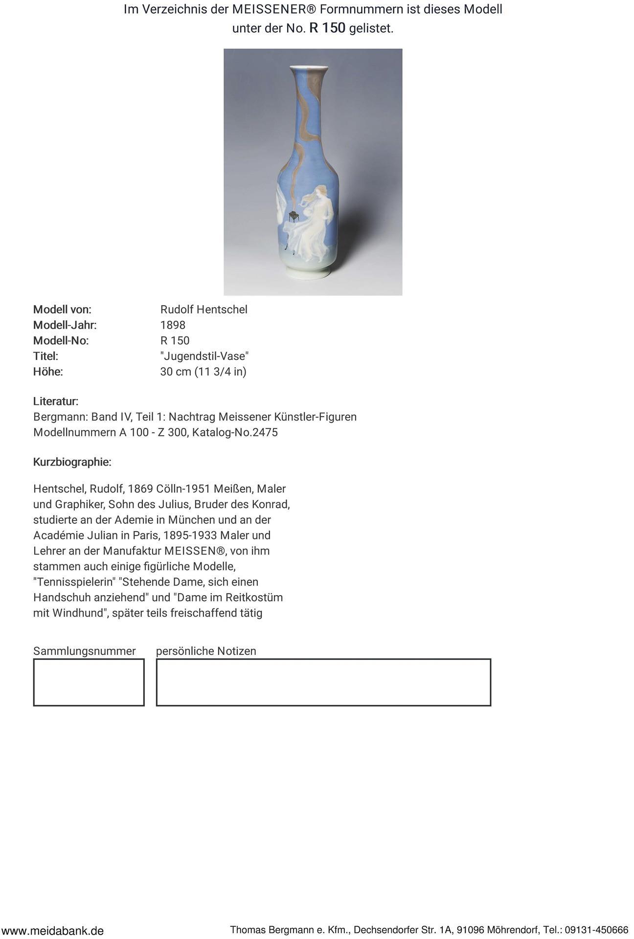 Design 1898-1923. model year: 1898, model no. R 150. model by. HENTSCHEL, Rudolf(1869 Cölln - 1951 Meissen)