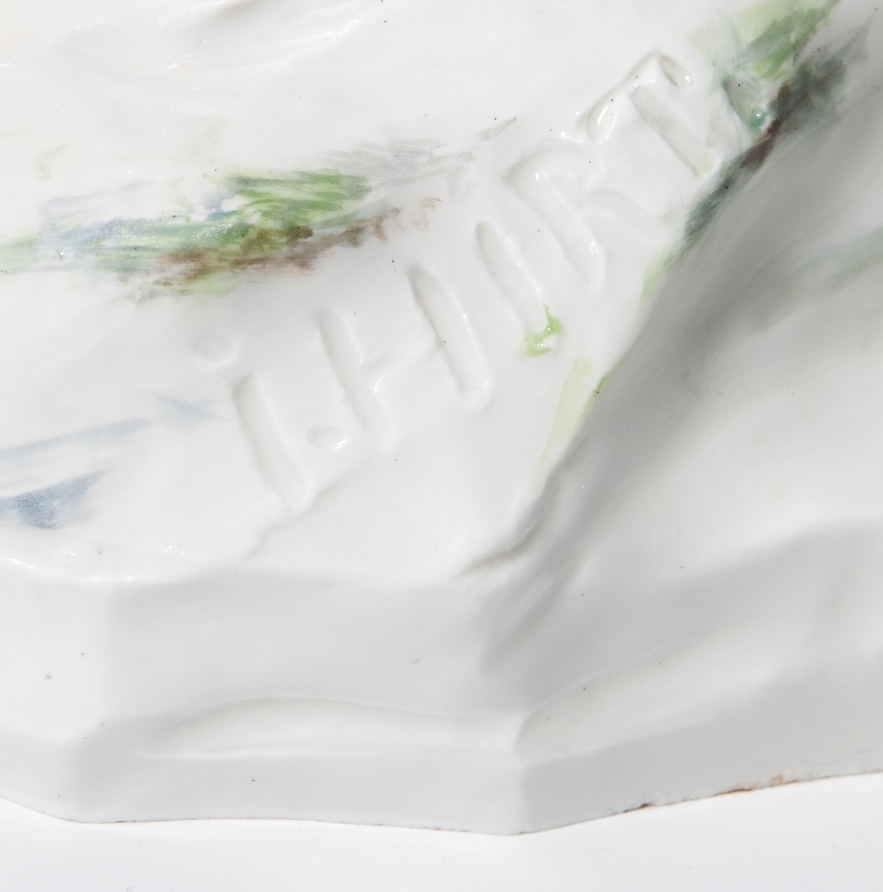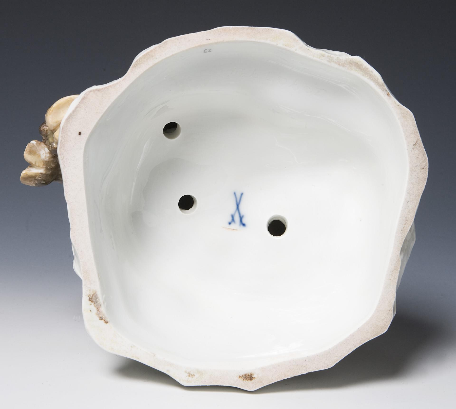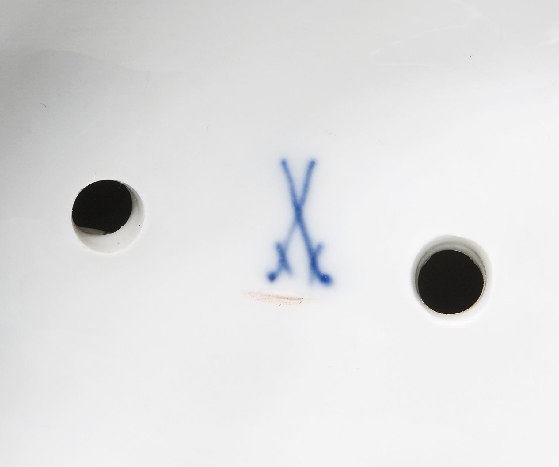 Painted in color. Incised mark, press mark, painter's mark, crossed swords mark, artist's signet. One sheet, one hoof slightly chipped.
