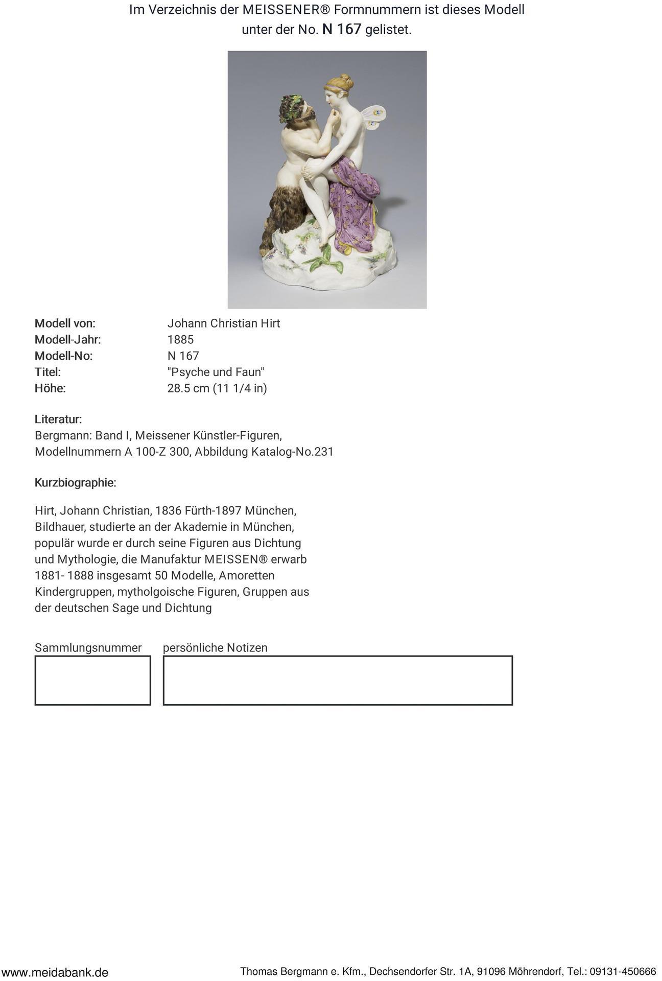 * Hirt, sculptor, studied at the academy in Munich. He became popular for his figures from poetry and mythology. Freelance since 1862, royal professor in 1892. The Meissen manufactory acquired a total of 50 models between 1881 and 1888.