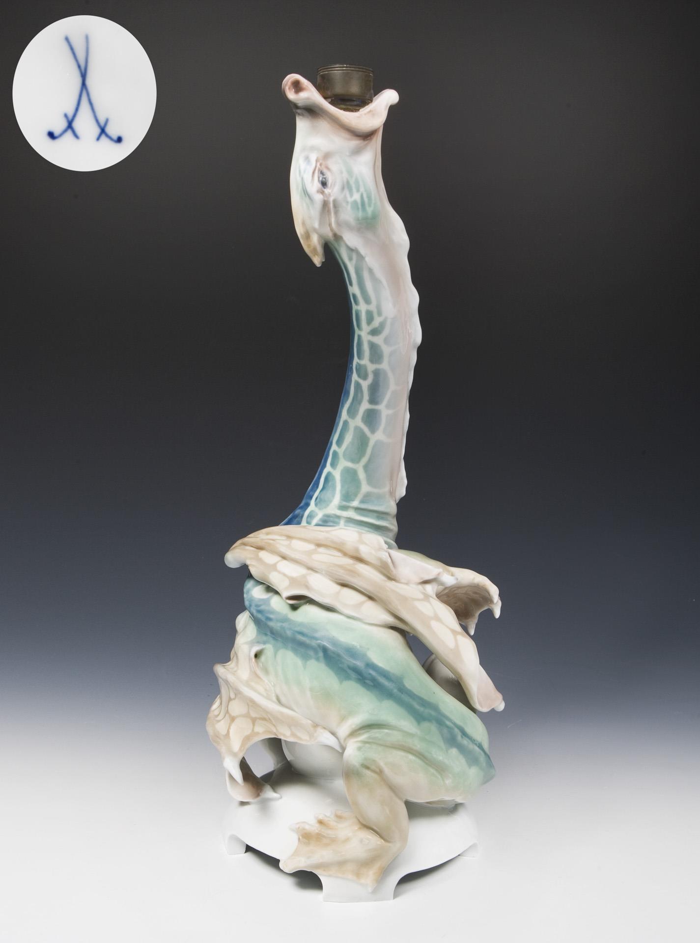 Rare Art Nouveau animal figurine: dragon as lamp base. Meissen.