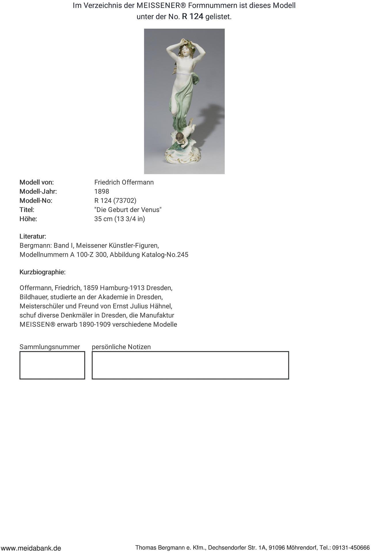 * Offermann, sculptor, studied at the academy in Dresden, master student and friend of Ernst Julius Hähnel. Freelance since 1888, created various monuments in Dresden. The Meissen manufactory acquired various models from 1890-1909 * Meissen manufactory price: 9490 euros.