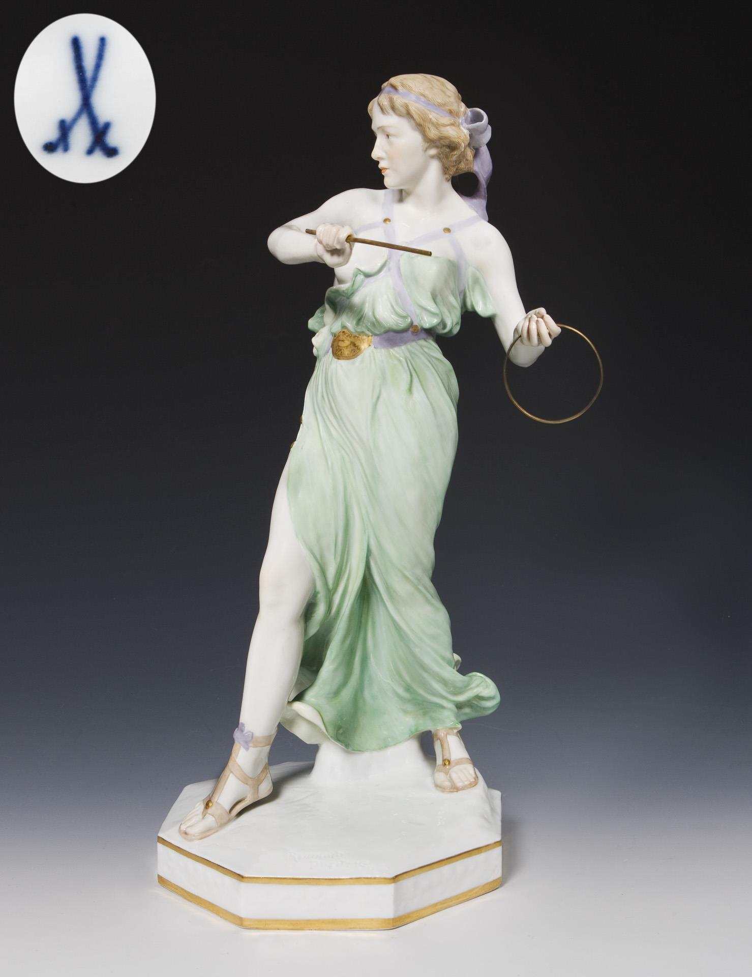Large Art Nouveau figurine: tire player. Meissen.