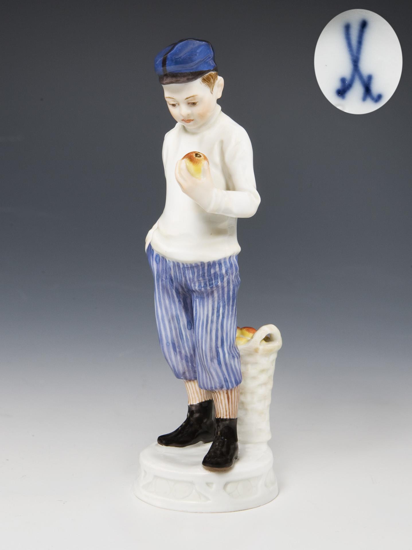Art Nouveau figurine: Boy with apple basket. Meissen.