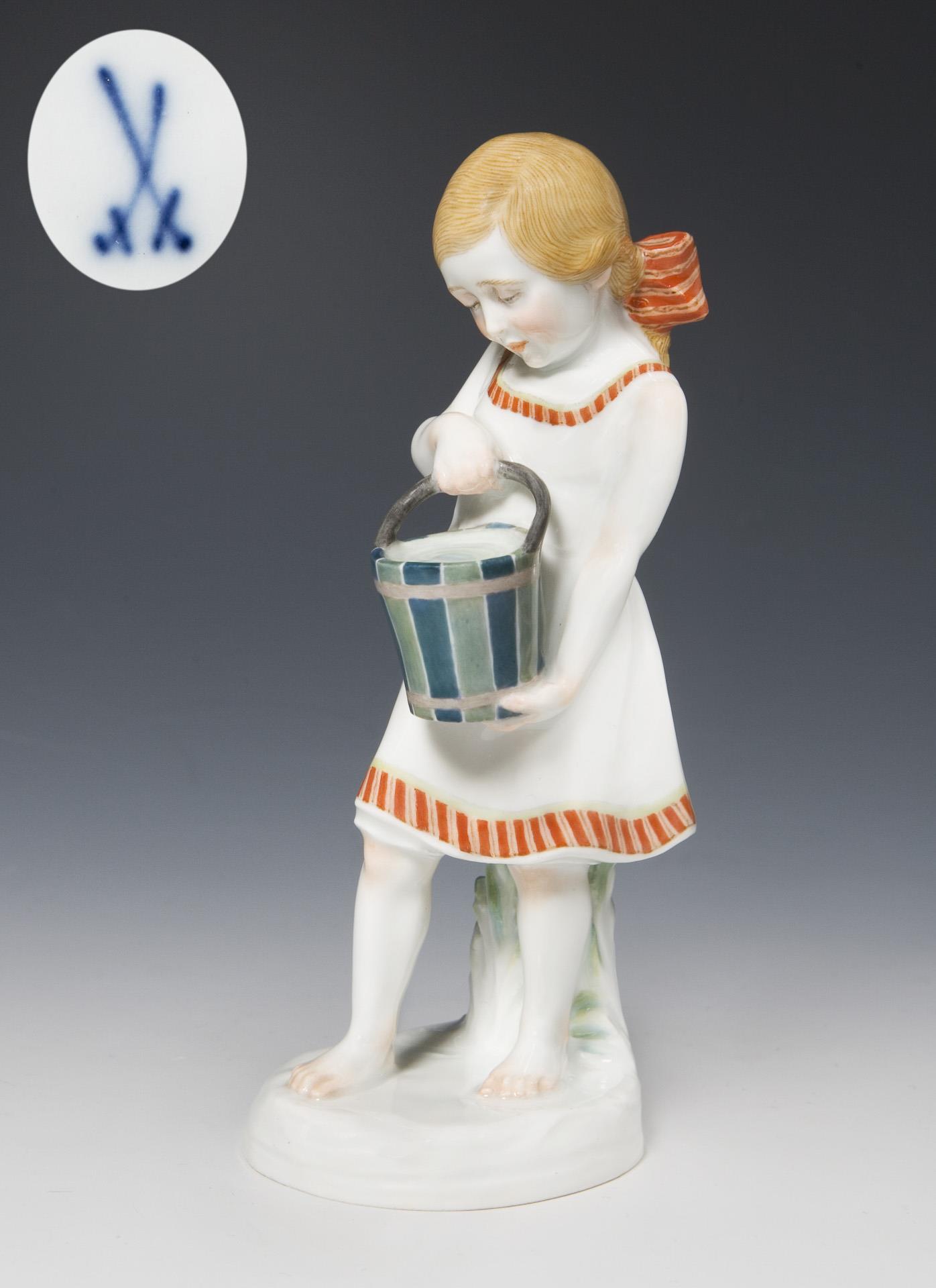 Art Nouveau figurine: Girl with bucket on the beach. Meissen.