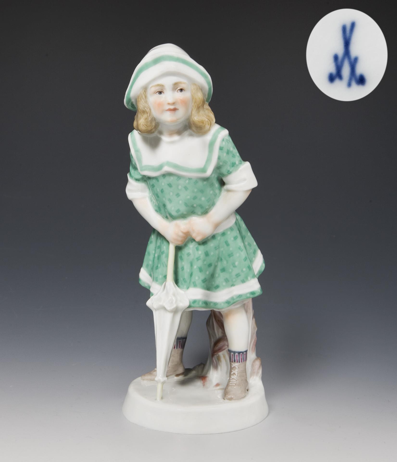 Rare Art Nouveau children's figurine: Girl with umbrella. Meissen.