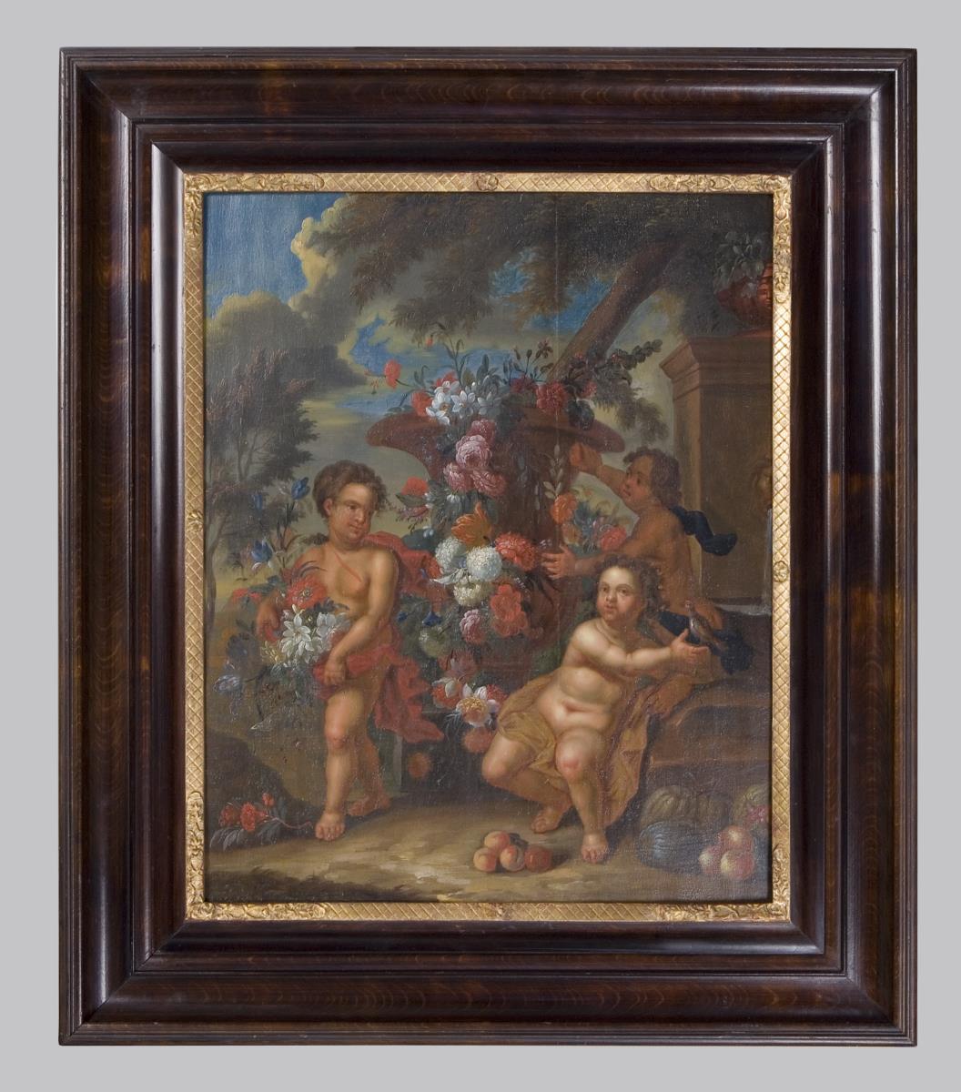 Verbruggen der Jüngere, Stilllebenmaler, Sohn und Schüler des Älteren. Bereits 1677 Meister der Lukasgilde. 1706-1723 in Den Haag tätig. Platzierte Blumensträuße in seinen Kompositionen in großen Steinvasen oder arrangierte sie in Form von Girlanden um diese Vasen, die oft im Freien aufgestellt waren. Arbeitete gemeinsam mit Figurenmalern an Kompositionen die Figuren mit einem Stillleben kombinierten * Partnerauktion Bergmann.