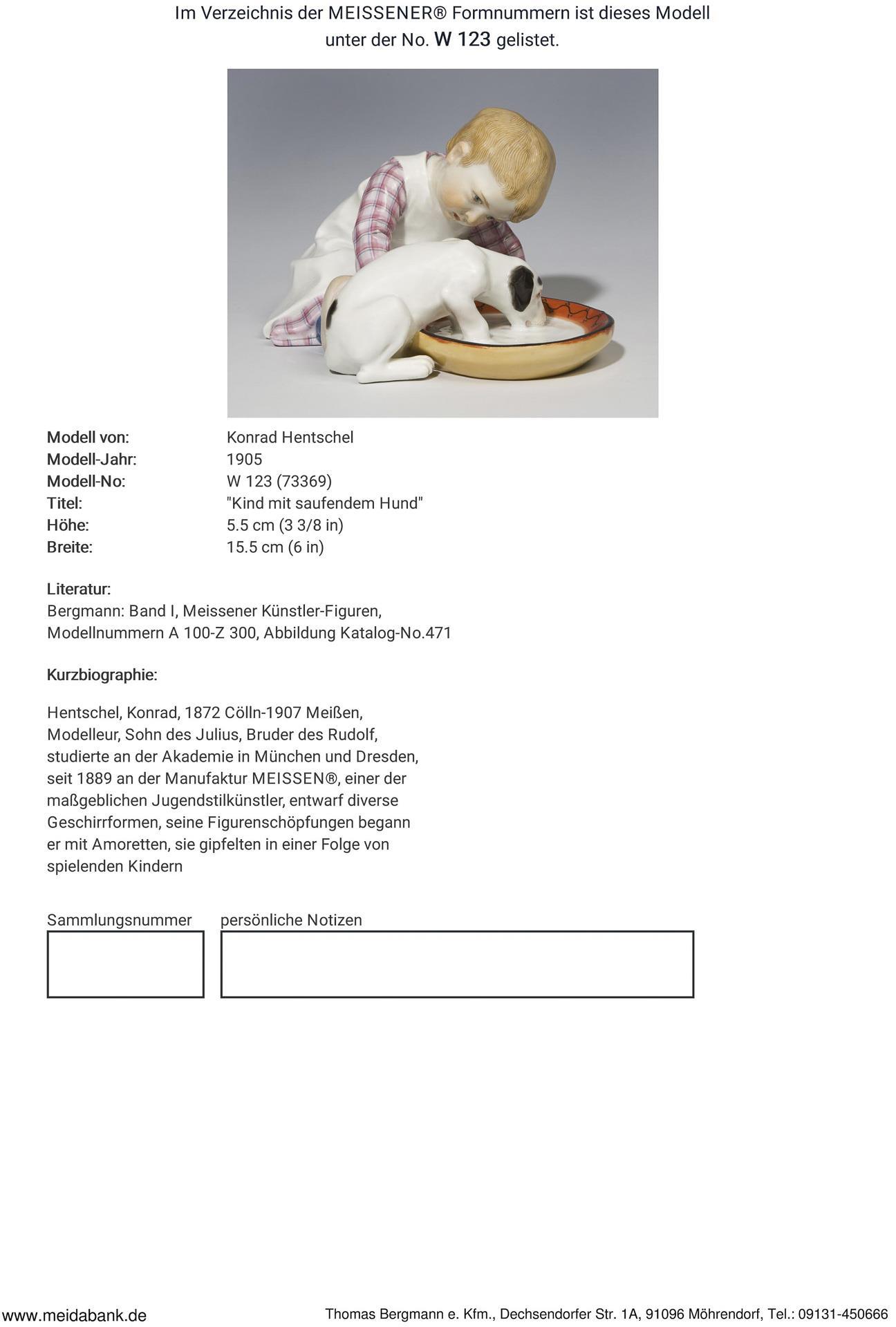 Molding 1910. model year: 1905, model no. W 123 (new mold no. 73369). Model from. HENTSCHEL, Konrad(1872 Cölln - 1907 Meissen)
