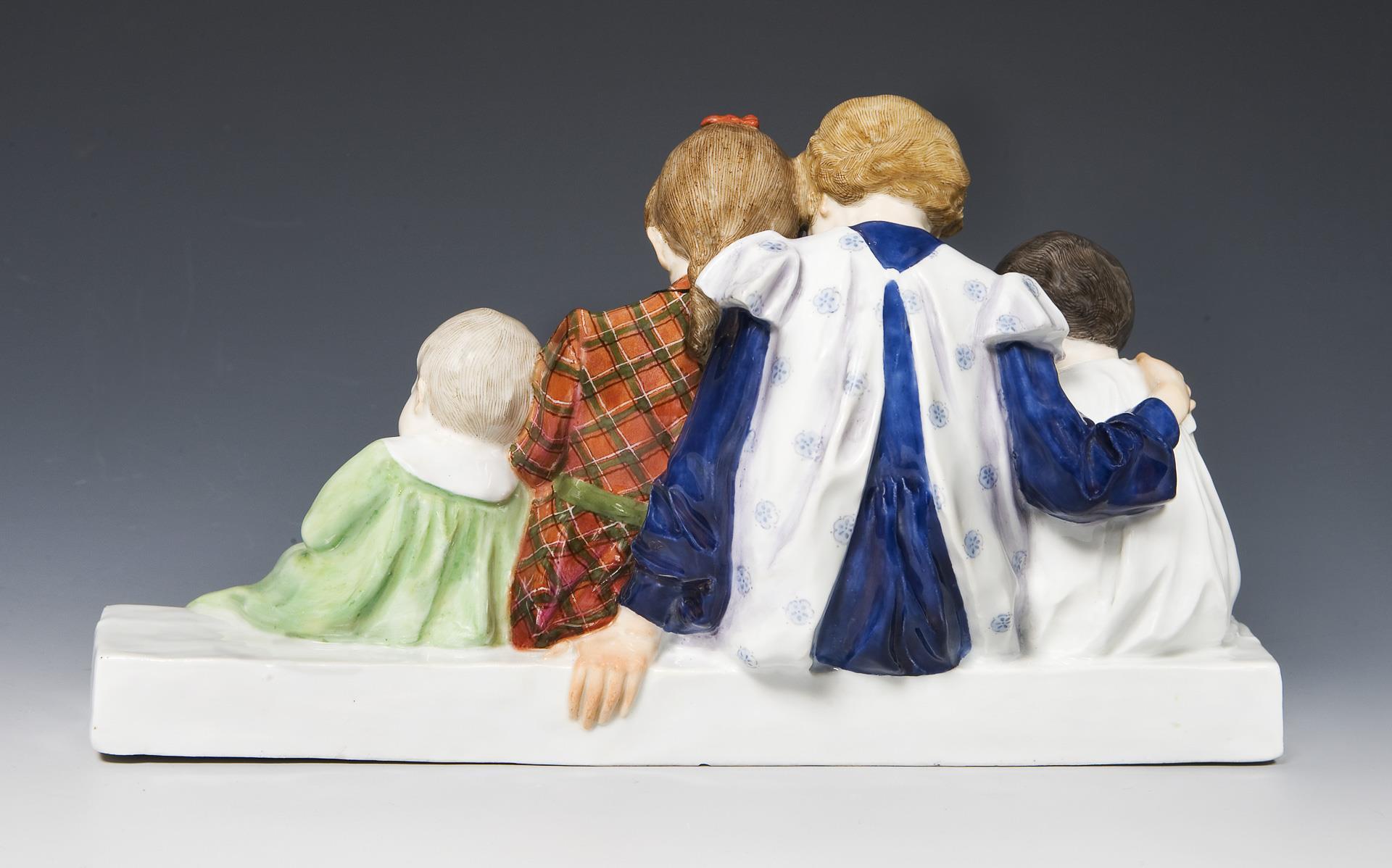 Art Nouveau children's group with doll. Meissen.
