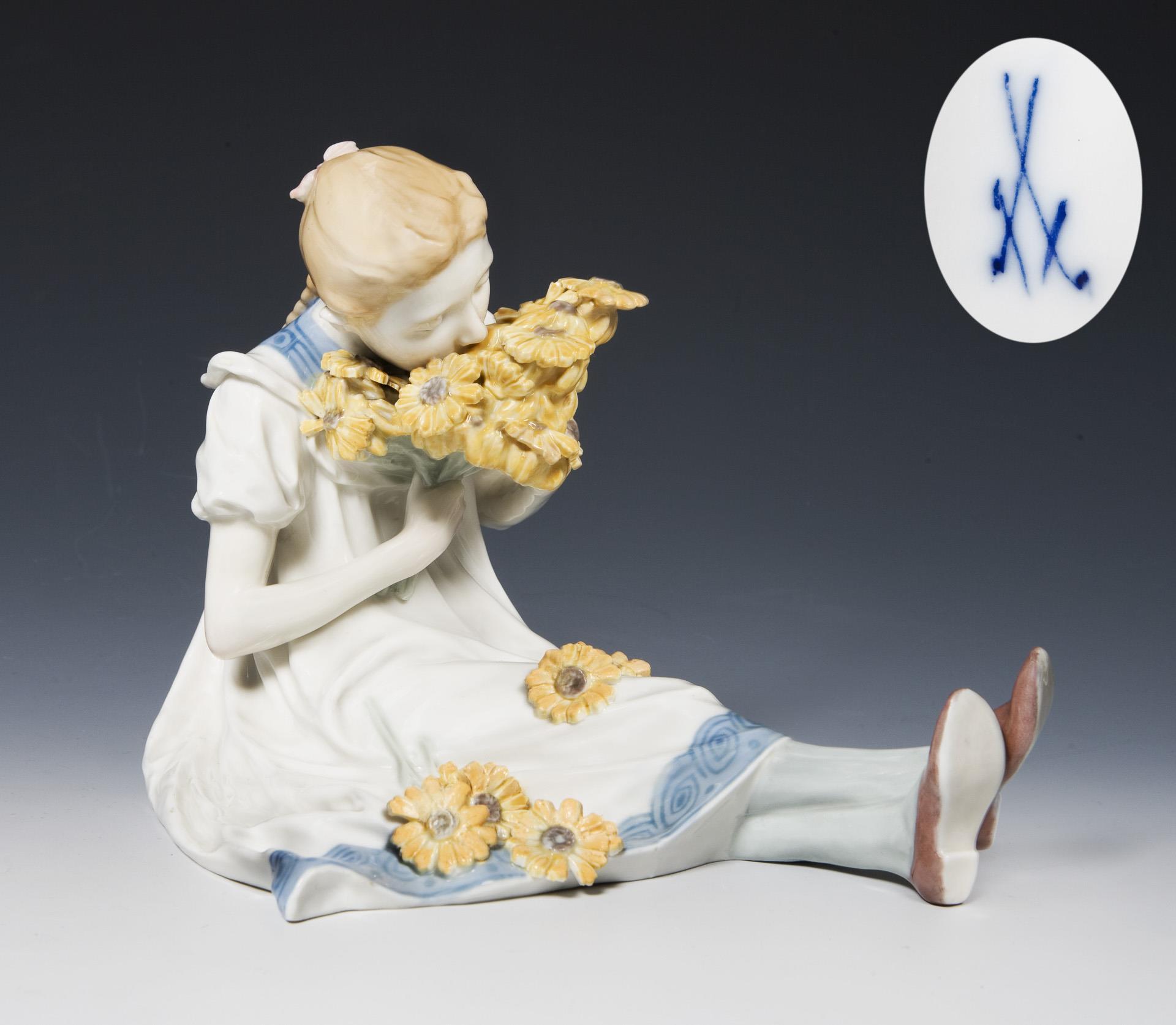 Art Nouveau figurine: Girl with bouquet. Meissen.