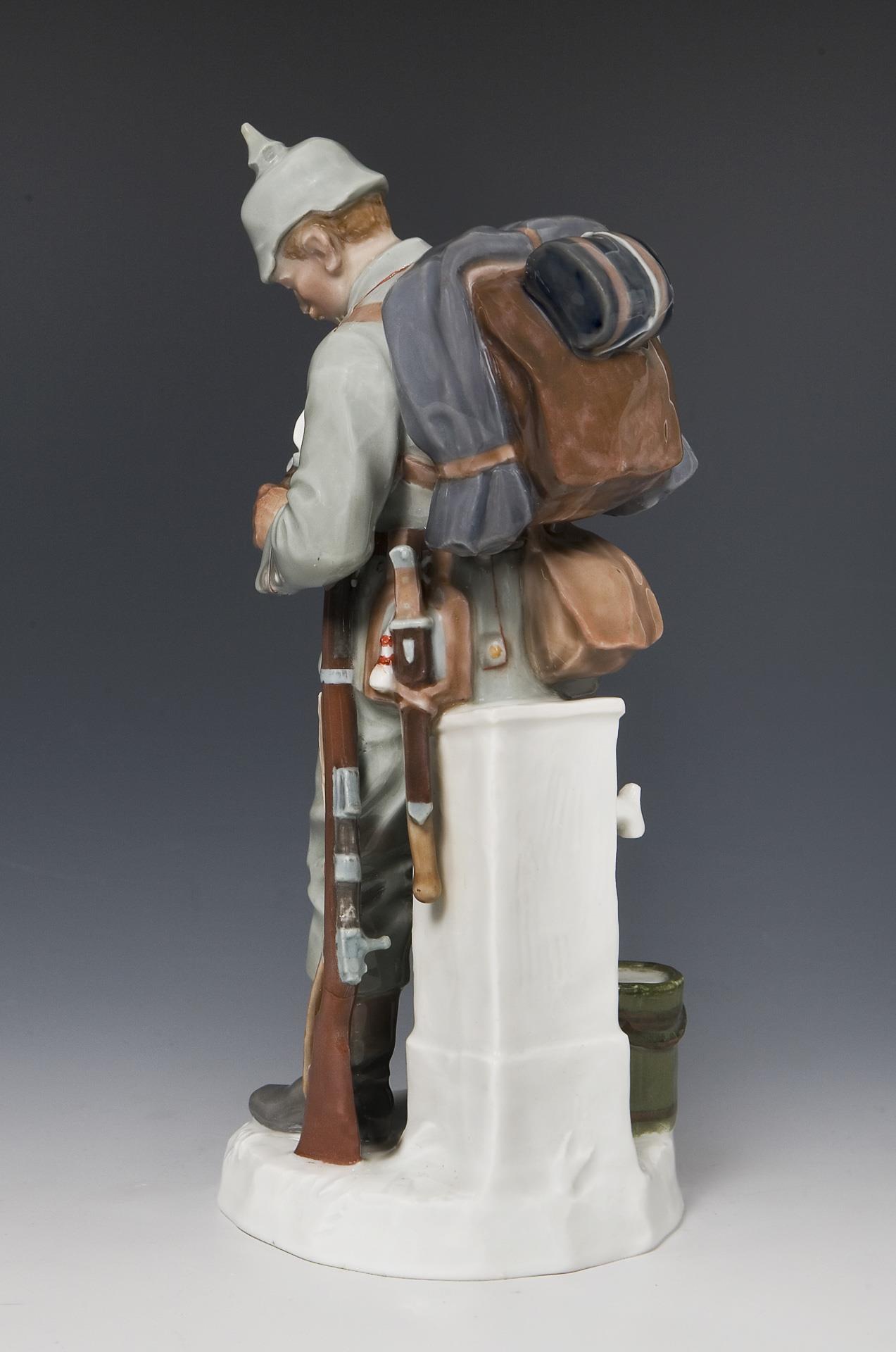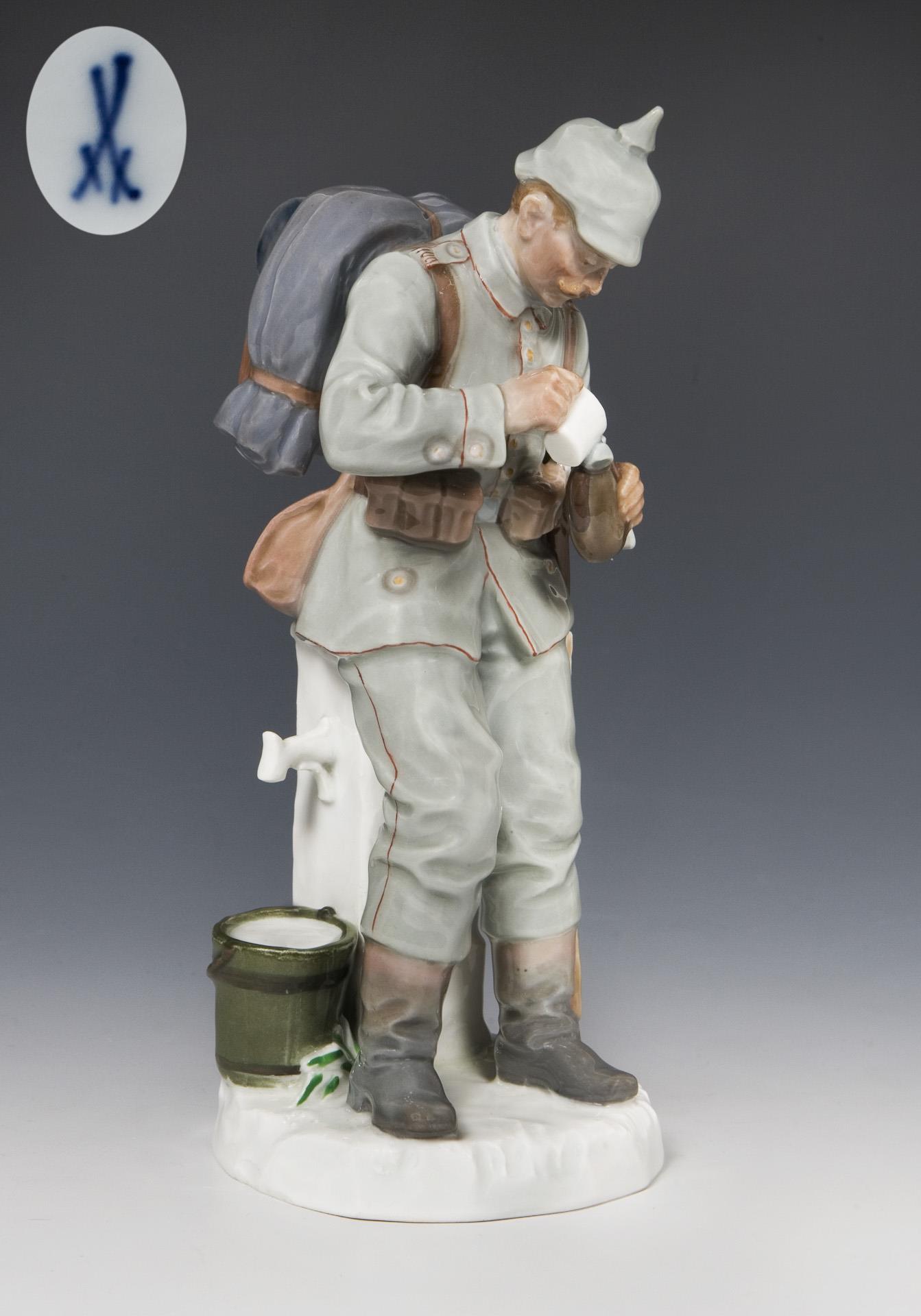 Rare Art Nouveau figurine: Soldier with canteen. Meissen.
