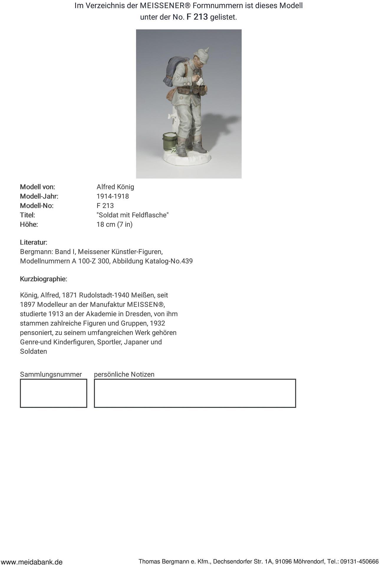 Mold 1914-1923. model year: 1914-1918, model no. F 213. model by. KÖNIG, Alfred(1871 Rudolstadt - 1940 Meissen)