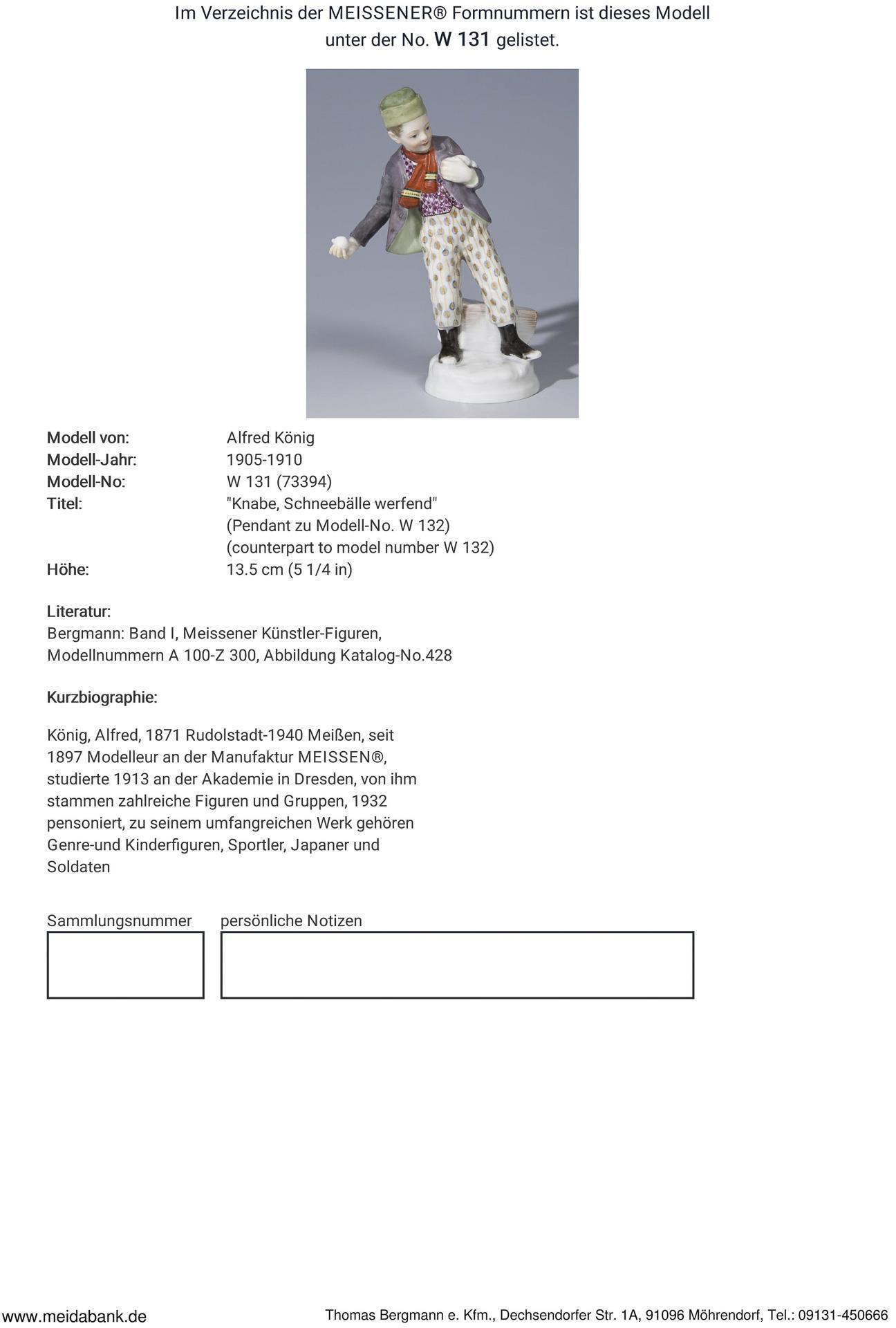 Molding 1905-1923. model year: 1905-1910, model no. W 131 (new mold no. 73394). Model from. KÖNIG, Alfred(1871 Rudolstadt - 1940 Meissen)