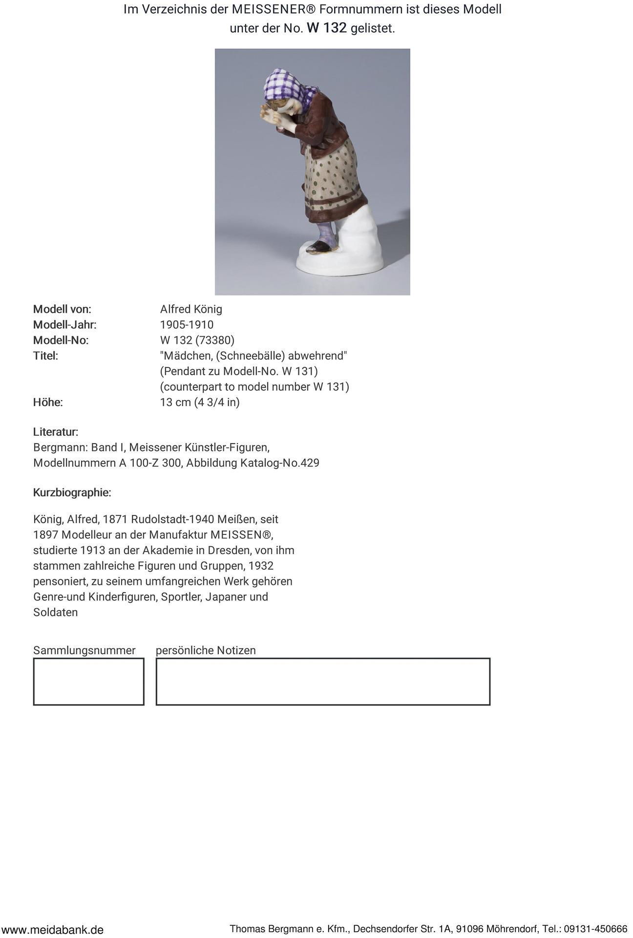 Molding 1905-1923. model year: 1905-1910, model no. W 132 (new mold no. 73380). Model from. KÖNIG, Alfred(1871 Rudolstadt - 1940 Meissen)