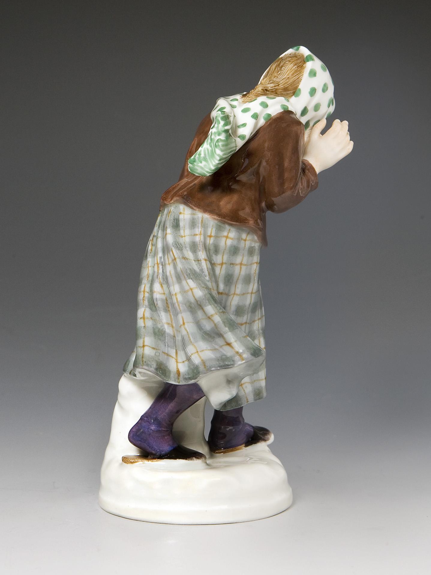 Counterpart to model no. W 131 "Boy, throwing snowballs", painted in color. Incised mark, press mark, painter's mark, sword mark.