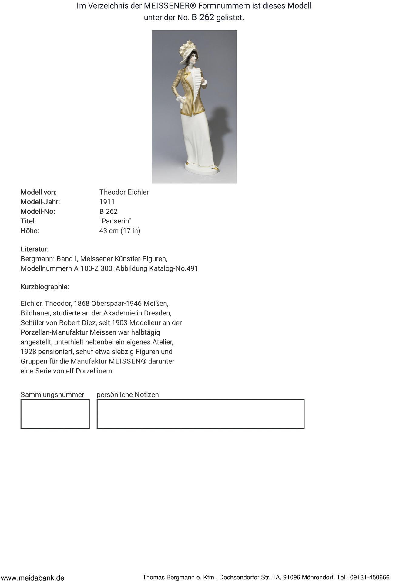 Mold 1911-1923. model year: 1911, model no. B 262. model by. EICHLER, Theodor(1868 Oberspaar - 1946 Meissen)