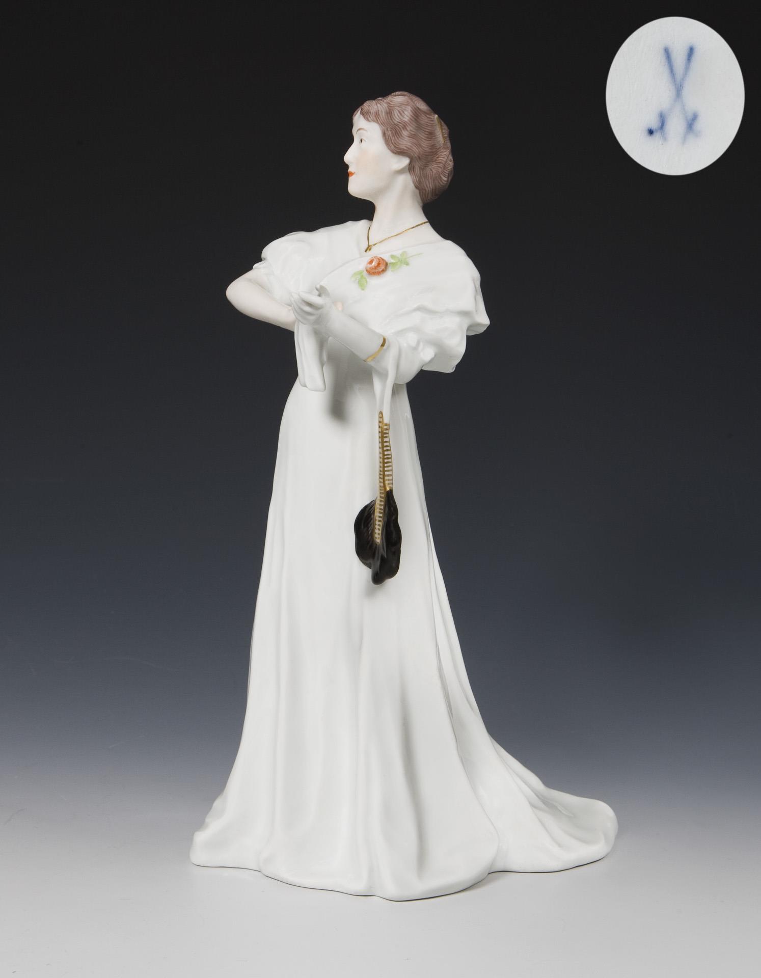 Art Nouveau figure: ball lady, buttoning up a glove. Meissen.