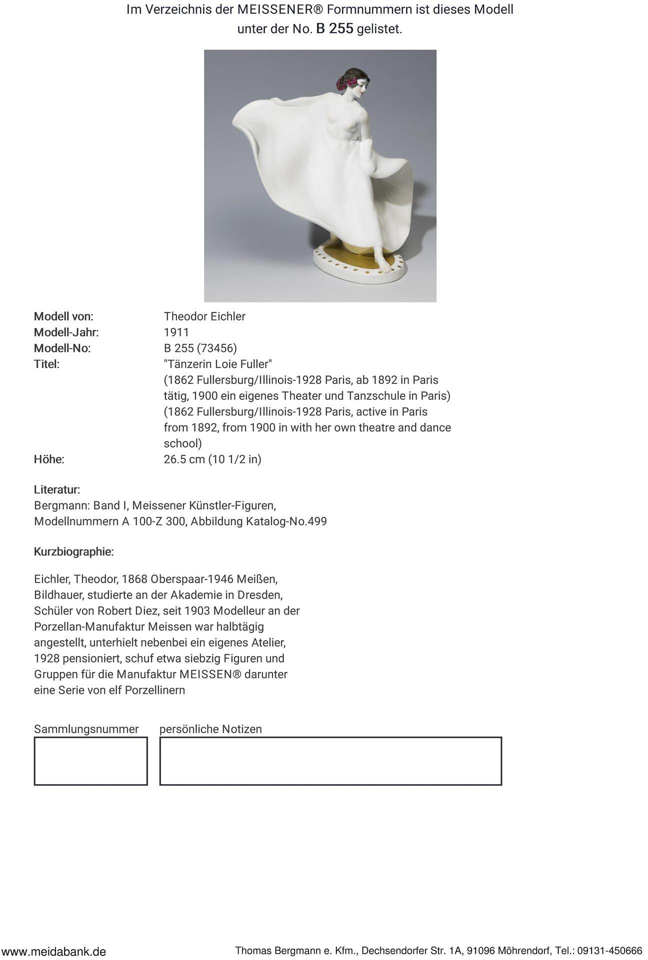 Molding 1911-1923. model year: 1911, model no. B 255 (new mold no. 73456). Model from. EICHLER, Theodor(1868 Oberspaar - 1946 Meissen)